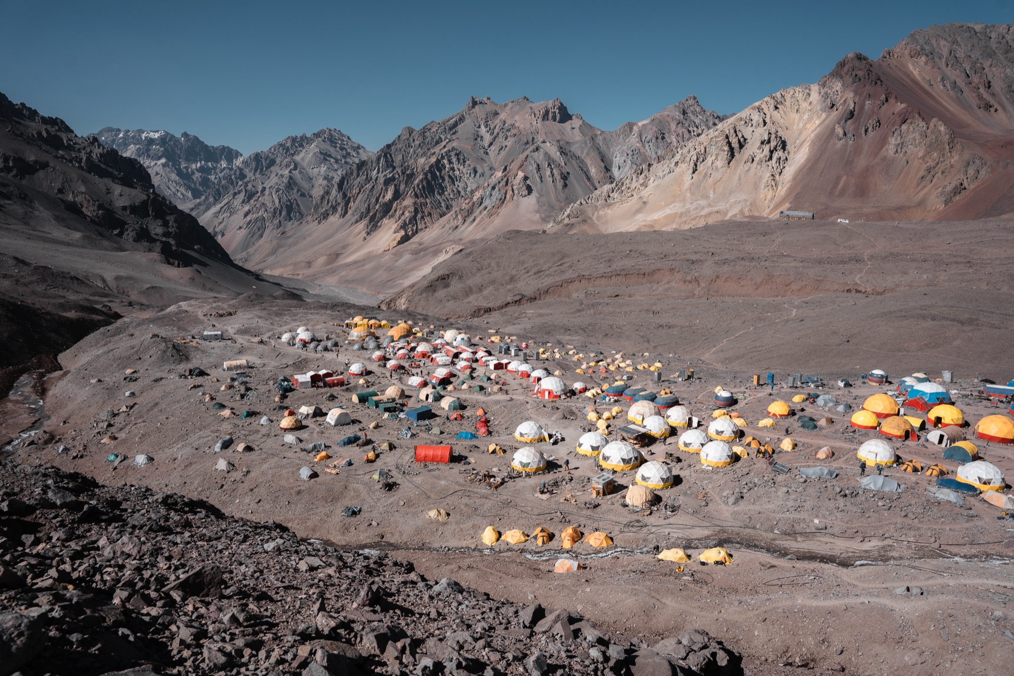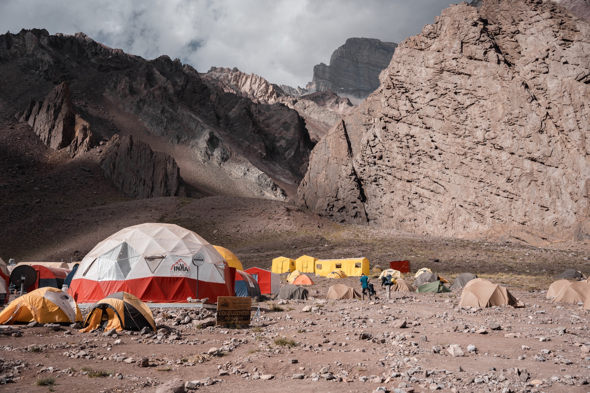 Plaza del Mulas это огромный альпинисткий городок, где есть и минигоспиталь и глемпинг от нескольких компаний, и даже есть своя арт-галерея местного художника Мигеля.