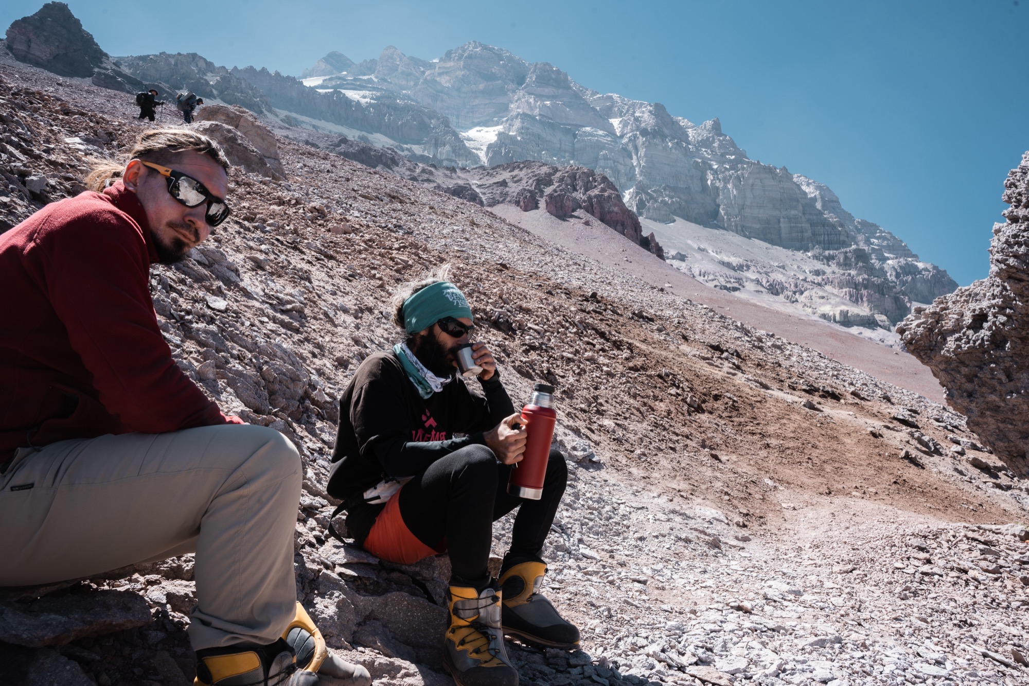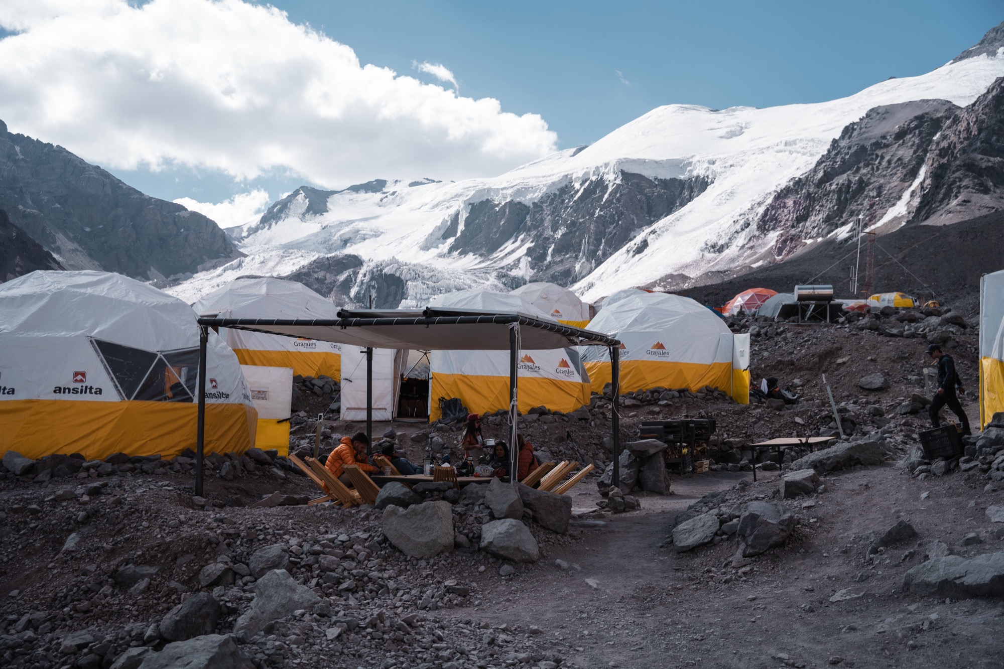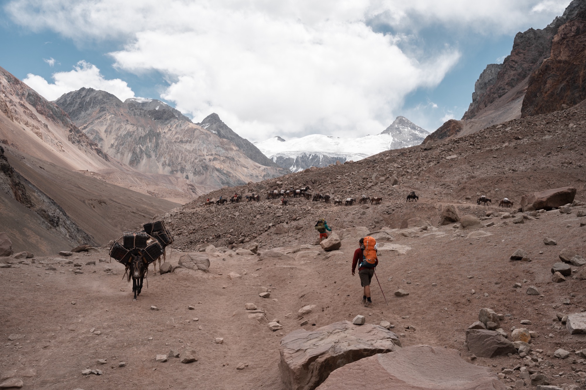Он побежал его искать и нашёл, но дрон был в плачевном состоянии и уже не запускался. А мы так хотели сделать классные кадры с дрона. Ну что ж, придя в себя от потери мы позавтракали и выдвинулись в главный базовый лагерь Plaza del Mulas на высоту 4300м.