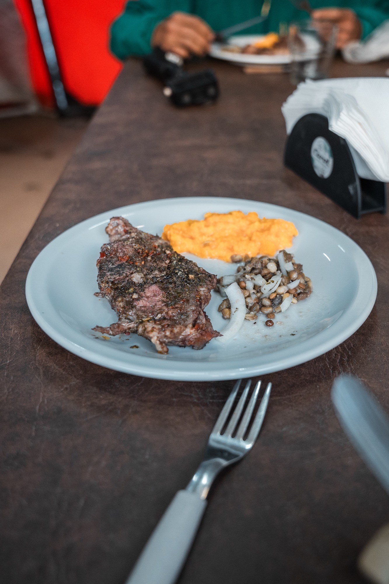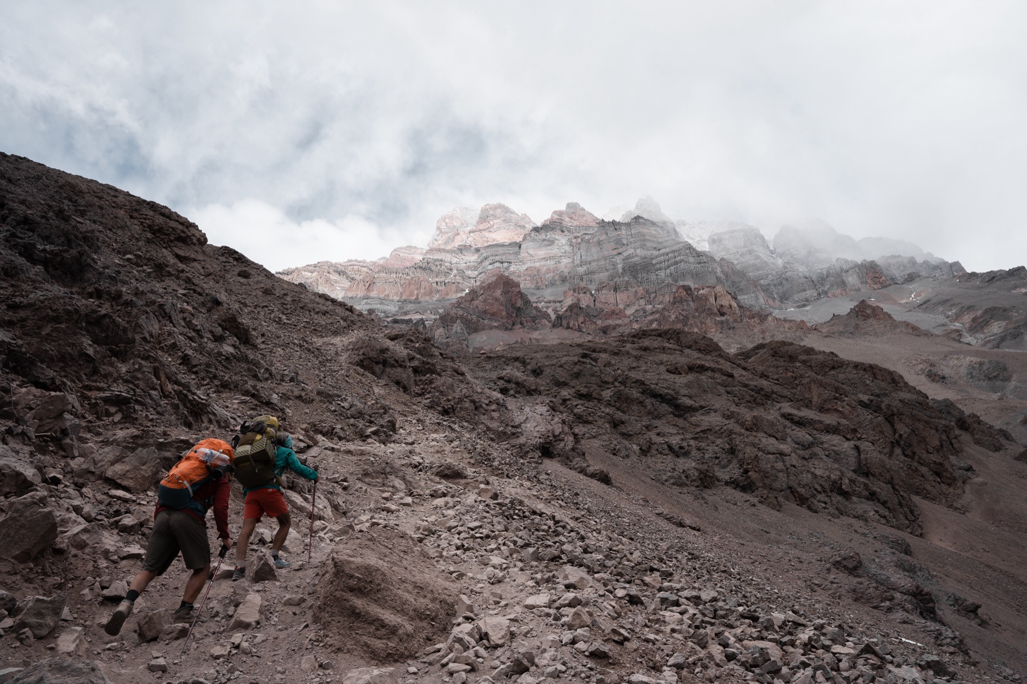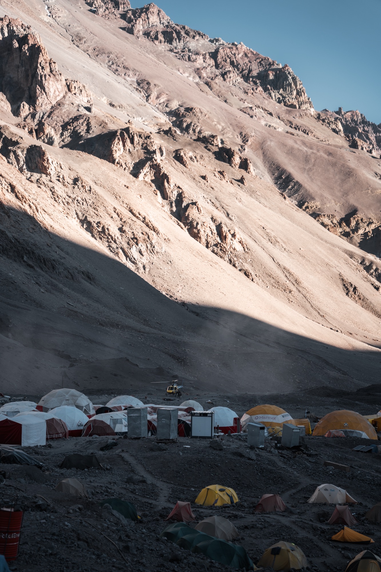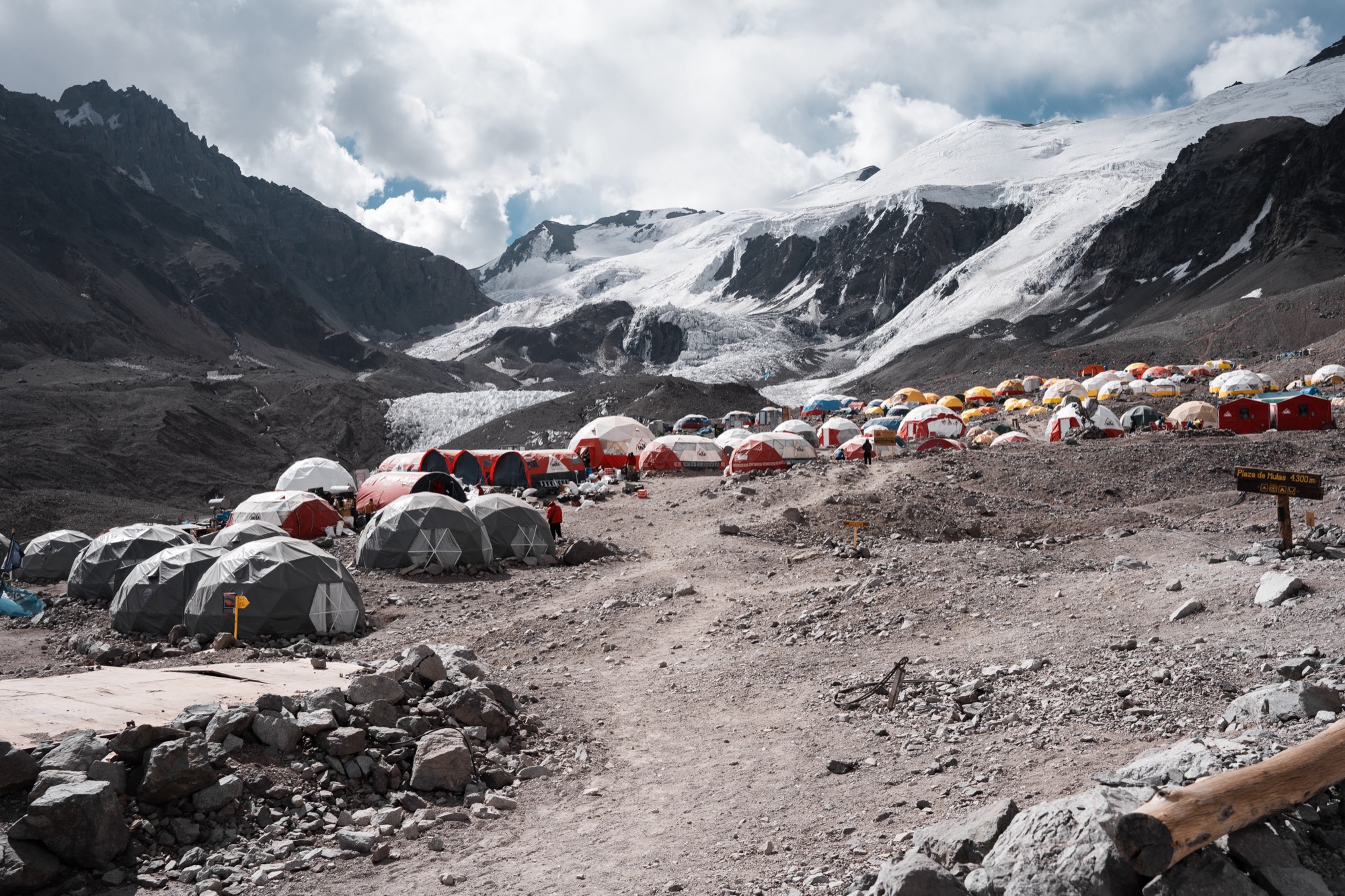 Он побежал его искать и нашёл, но дрон был в плачевном состоянии и уже не запускался. А мы так хотели сделать классные кадры с дрона. Ну что ж, придя в себя от потери мы позавтракали и выдвинулись в главный базовый лагерь Plaza del Mulas на высоту 4300м.