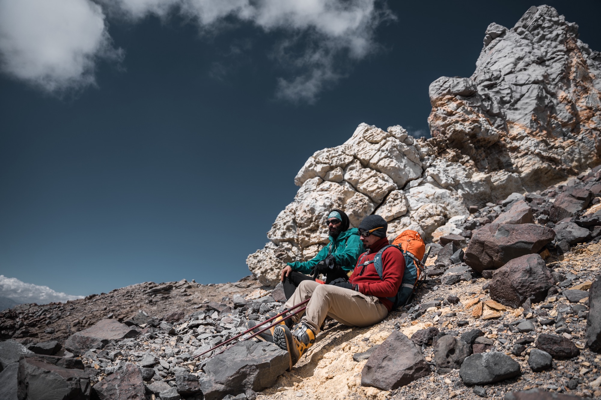 Нам предстояло зайти ещё в лагерь Канада на 5000 и забрать оттуда палатку. Там мы немного отдохнули, собрали палатку, пофотографировались и продолжили спуск
