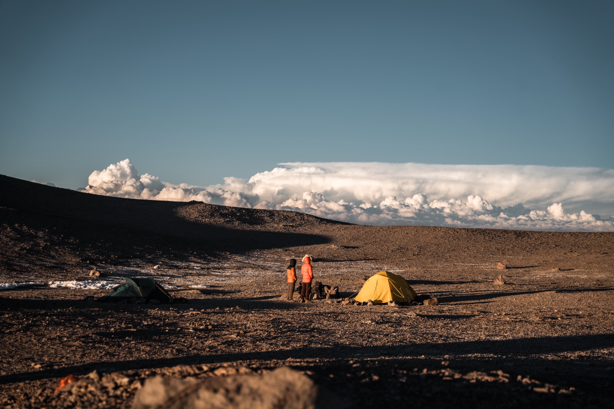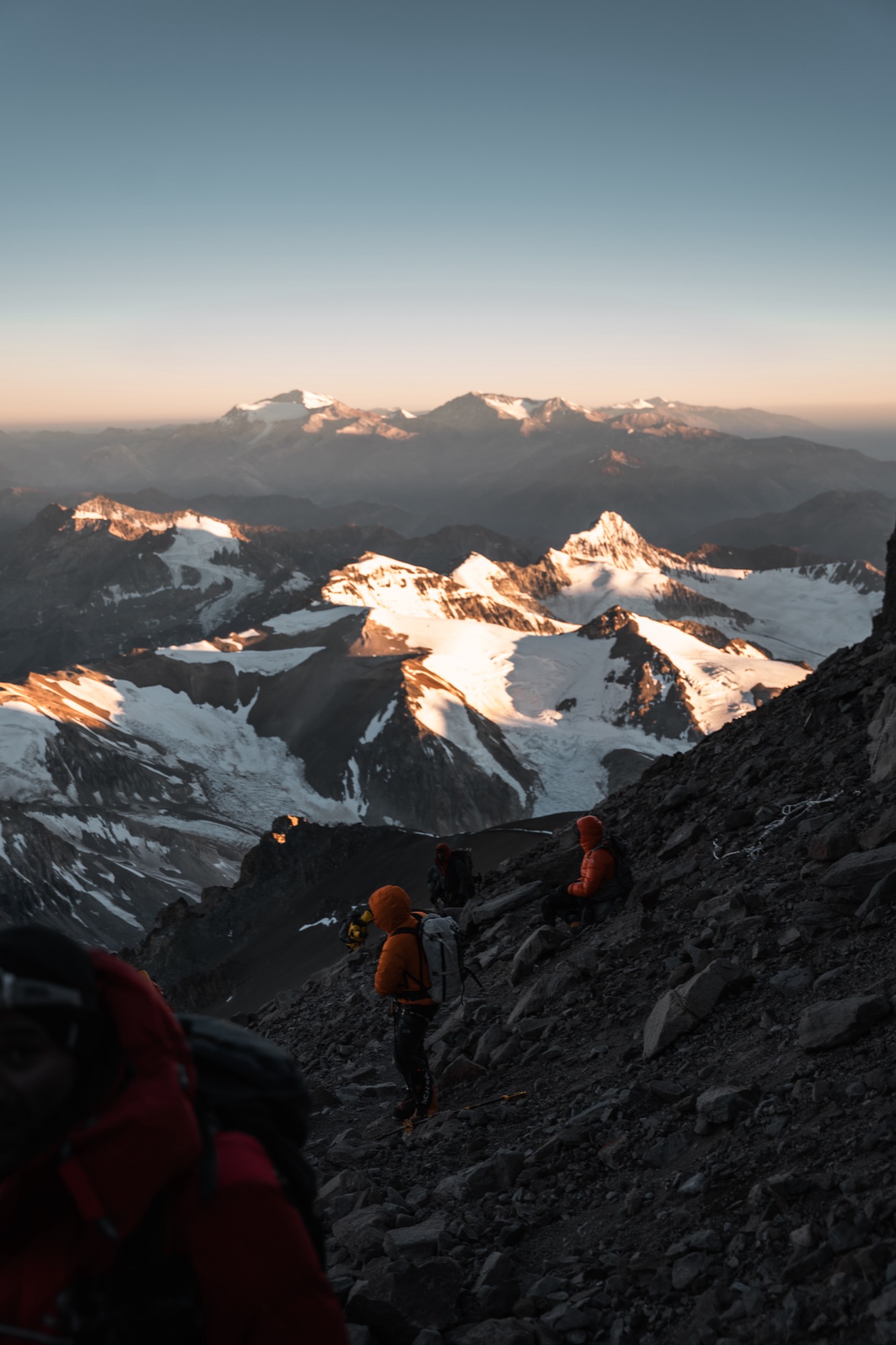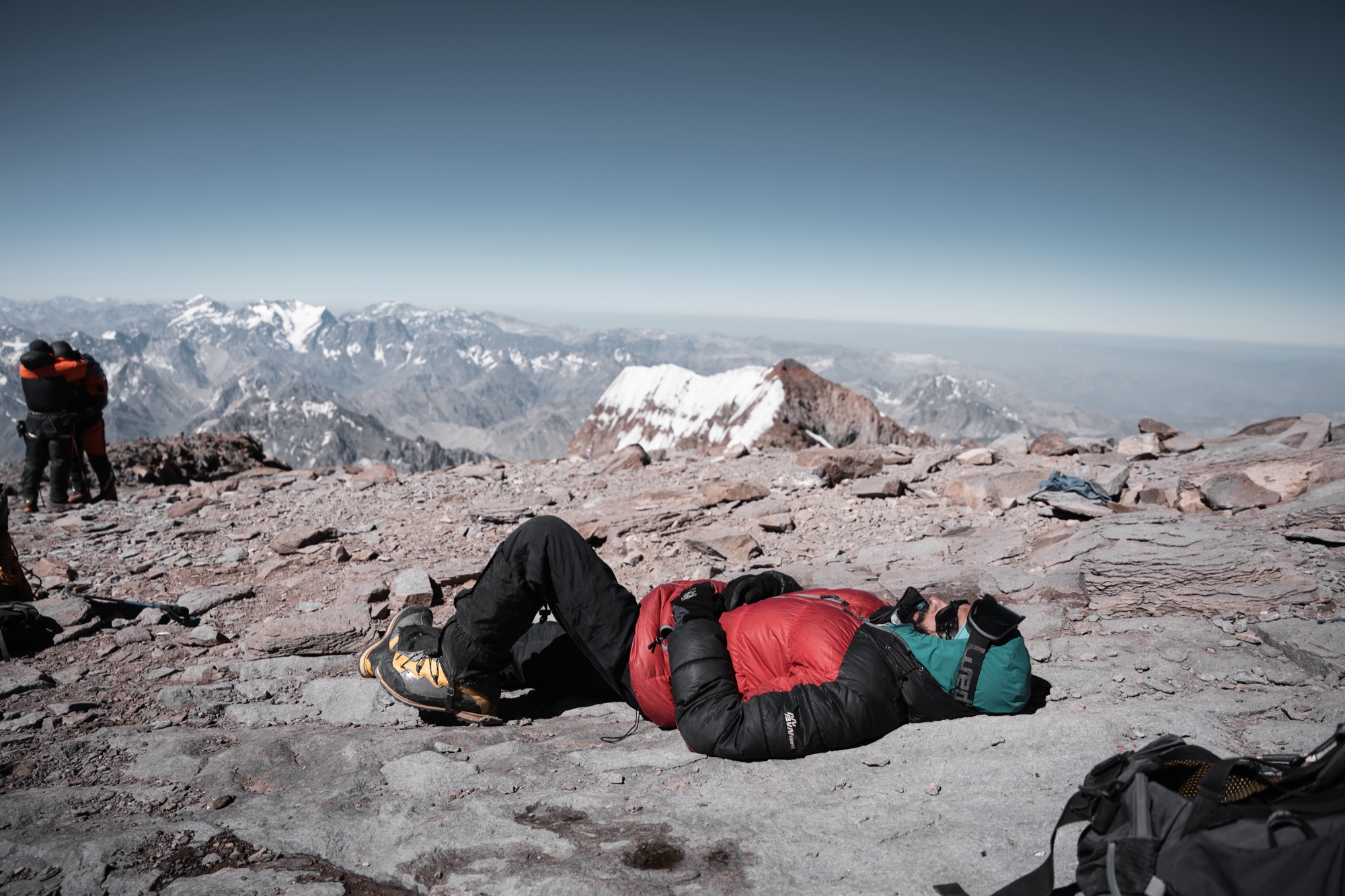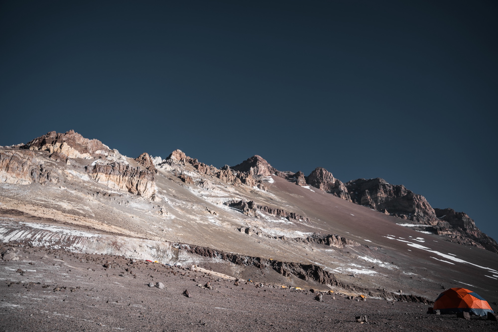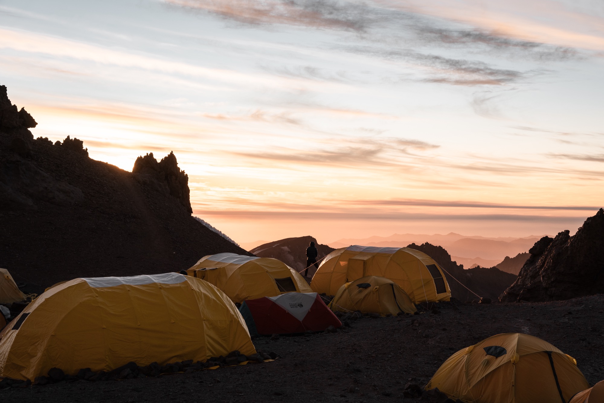 Пришли в лагерь на 5900м к обеду, отдохнули, собрали палатку и спустились на 5500 в лагерь Нидо де Кондорас. Сил и желания спускаться дальше уже не было. Да и не хотелось пропустить такой закат: