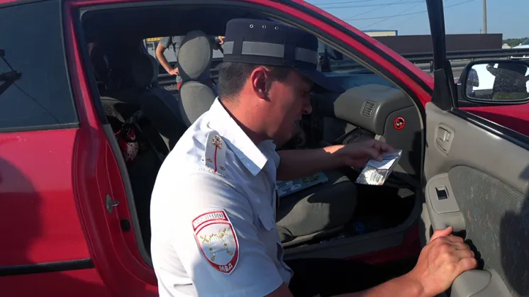 Ехать по нему, конечно, одно удовольствие. 19 километров ровного асфальта и моря за ограждениями. Дальше нас ждал душный Краснодар, где мы докупили снарягу в Декатлоне. При въезде в Ставропольский край нас остановили на посту ДПС.