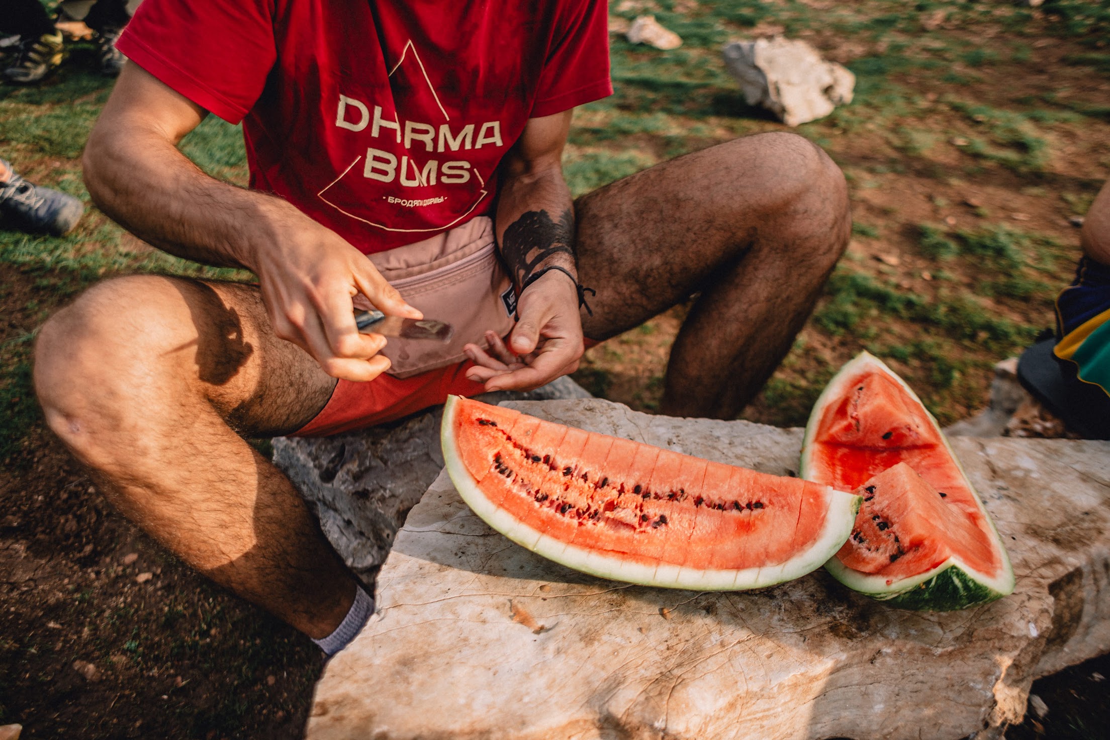 На традиционном месте обеда мы сделали небольшой привал, поели арбуз, купленный на ярмарке