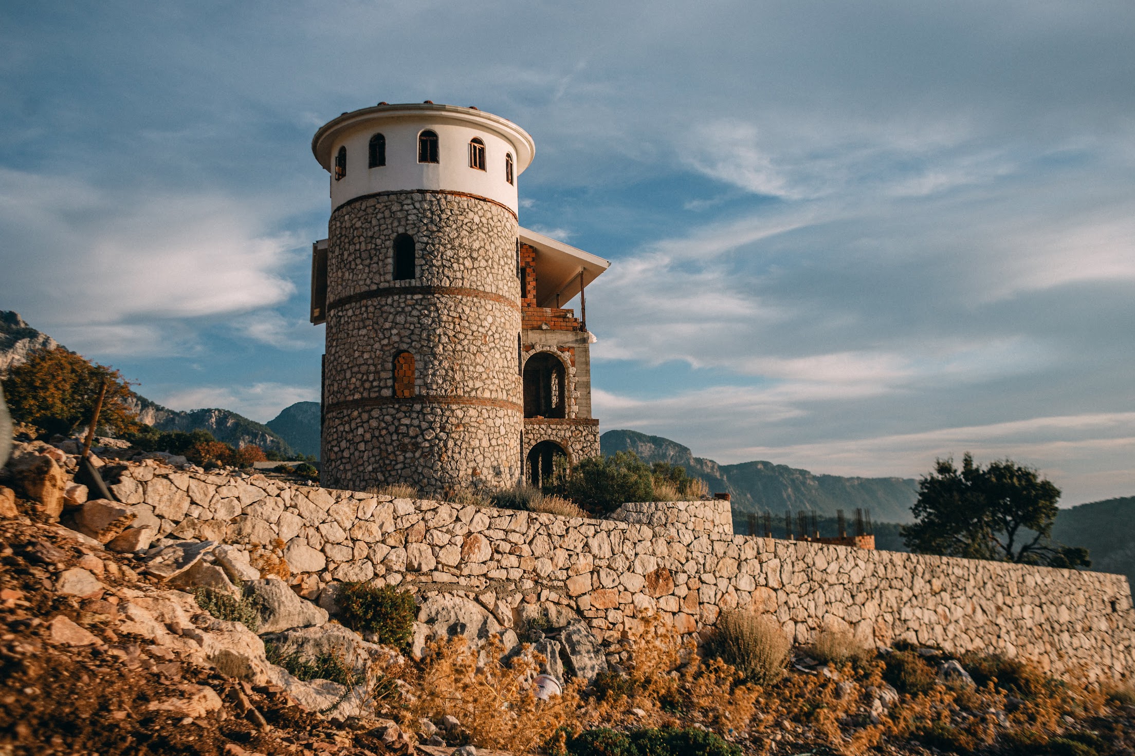 Еще 2 года тому назад здесь не было некаких построек, а сейчас как на дрожжах растут здания, сделанные из местного бута