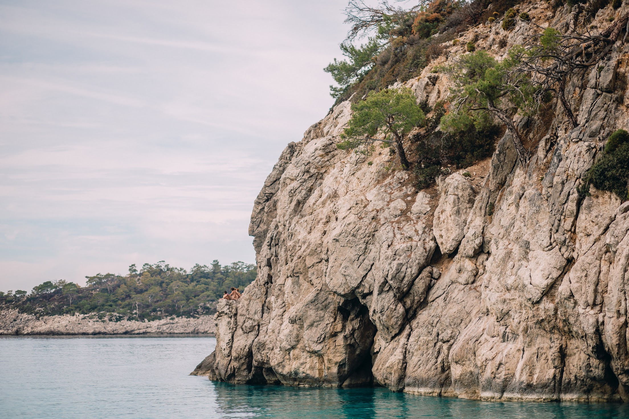 Здесь мы пообедали, закупились, почилили и пошли дальше. Здесь Ликийская тропа уходит наверх в деревню Алинча, но мы пошли вдоль берега. Тропа местами переходит в скальные участки