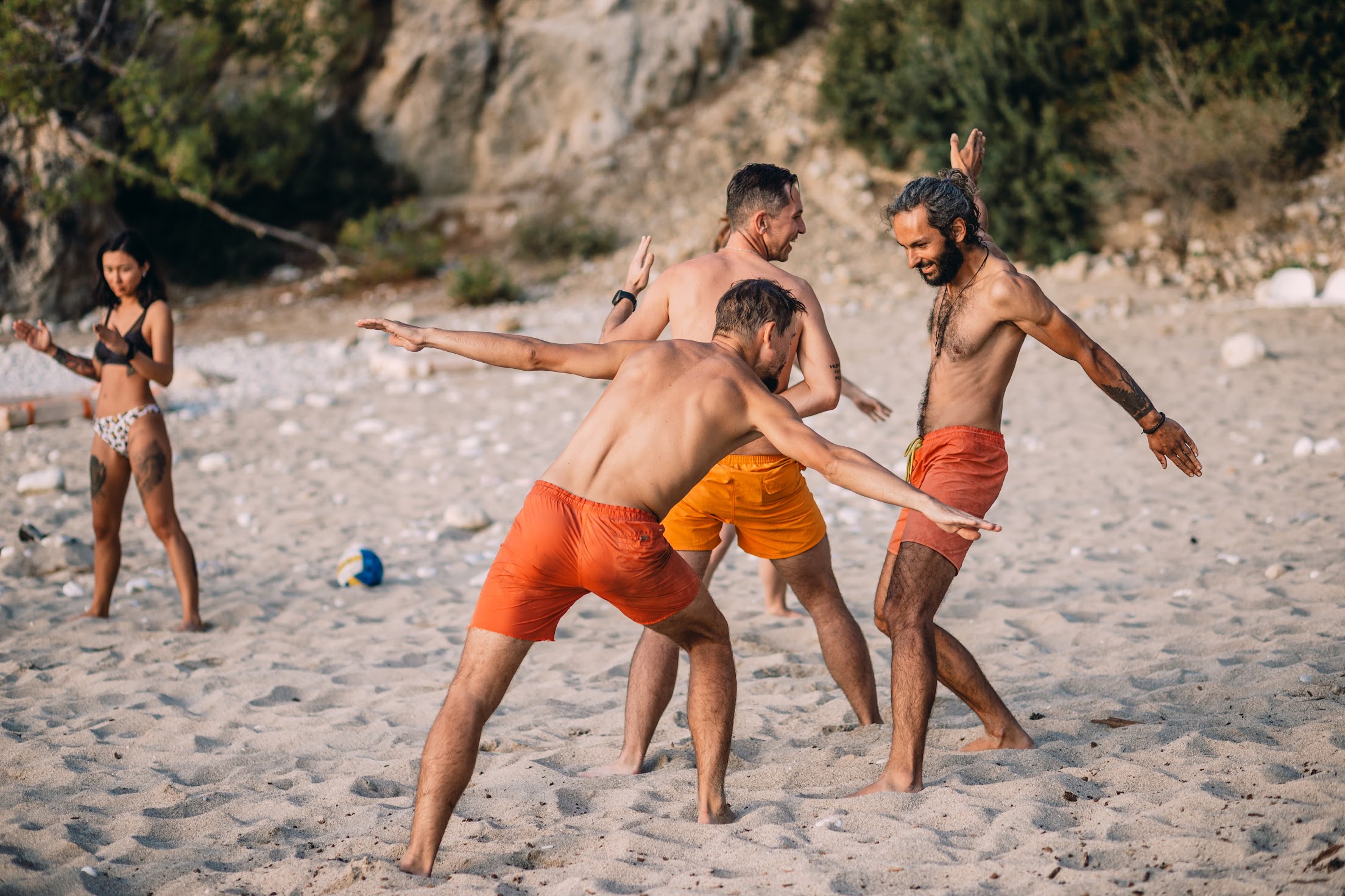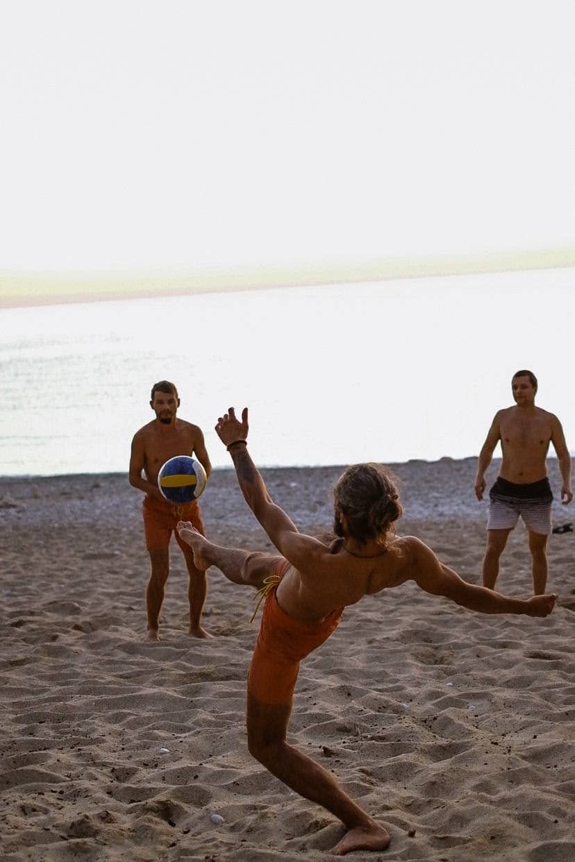 Мы взяли с собой волейбольный мяч, чему я был очень рад