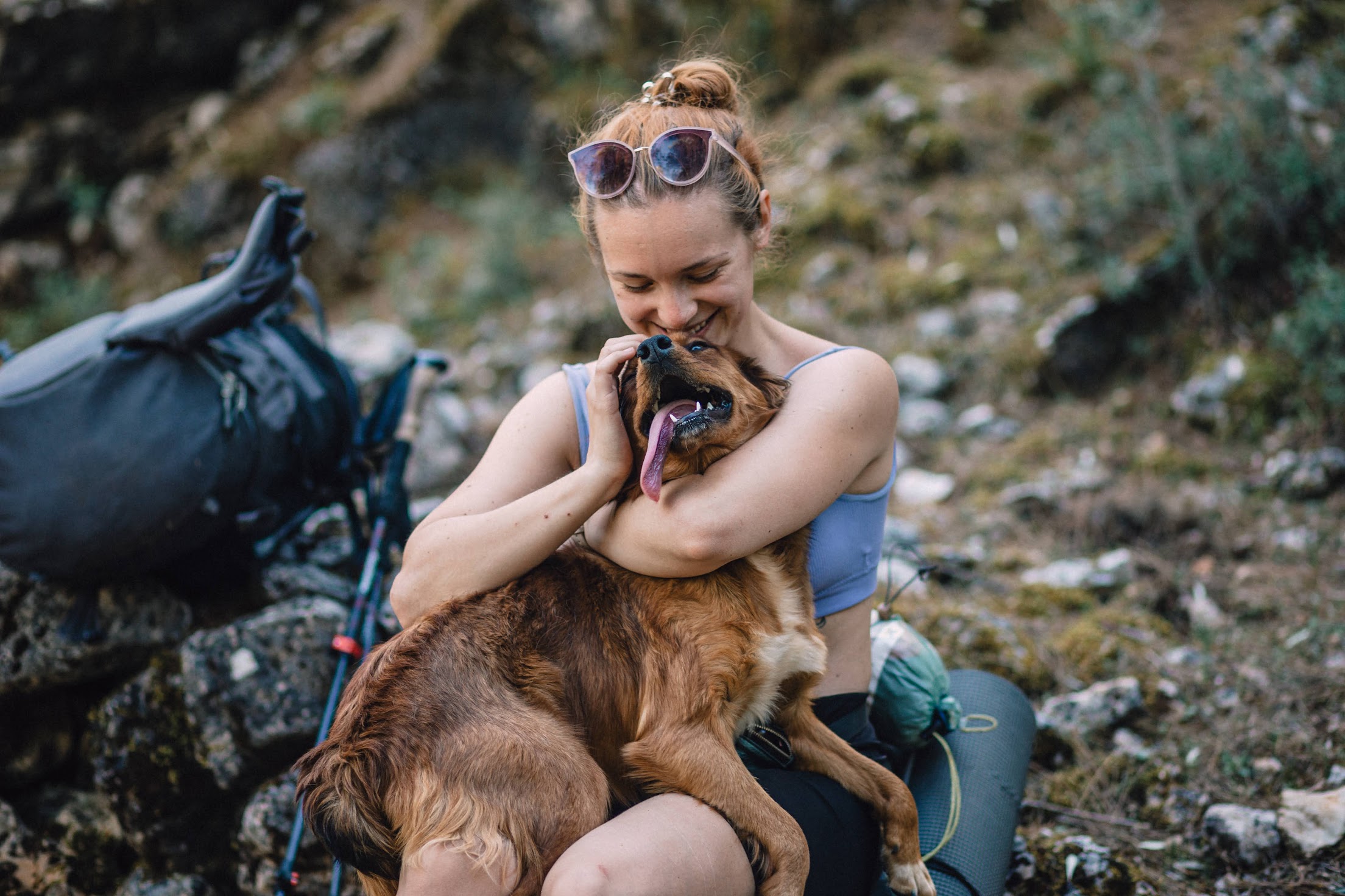 На следующем привале встречаем пса, которого отвязали еще год назад на этом же месте. Теперь он свободный бегает по округе. Сколько счастья было и для нас и для пса