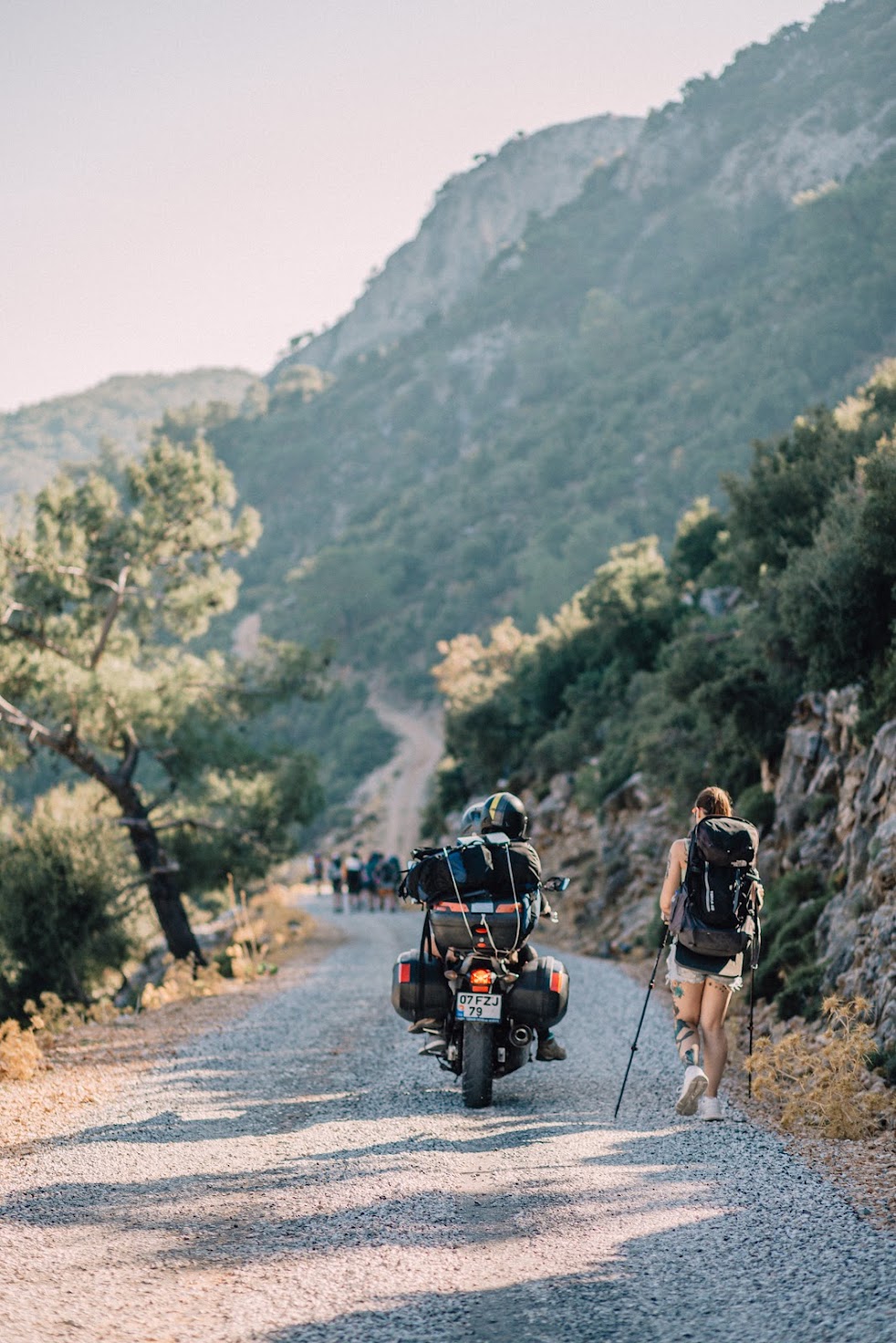 Нужно было преодолеть перевал, но он простой и идти надо преимущественно по дороге. Это те места, где мы можем идти (и ехать) в полном составе. Да да, вы не забыли про Олега?