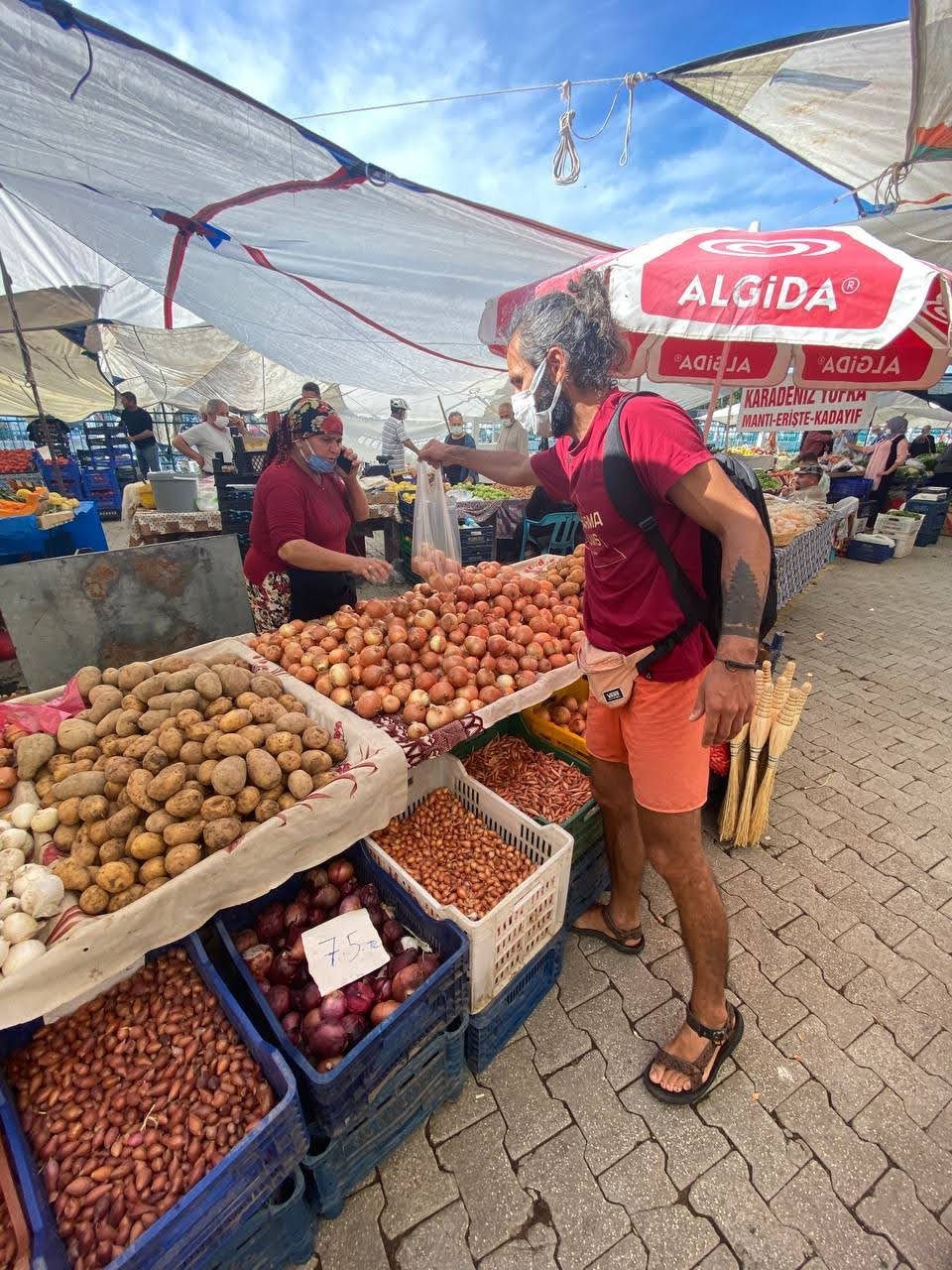 К обеду были в Фетхие, где застали пятничный рынок, на котором закупились овощами и фруктами, а также пообедали гюзлеме