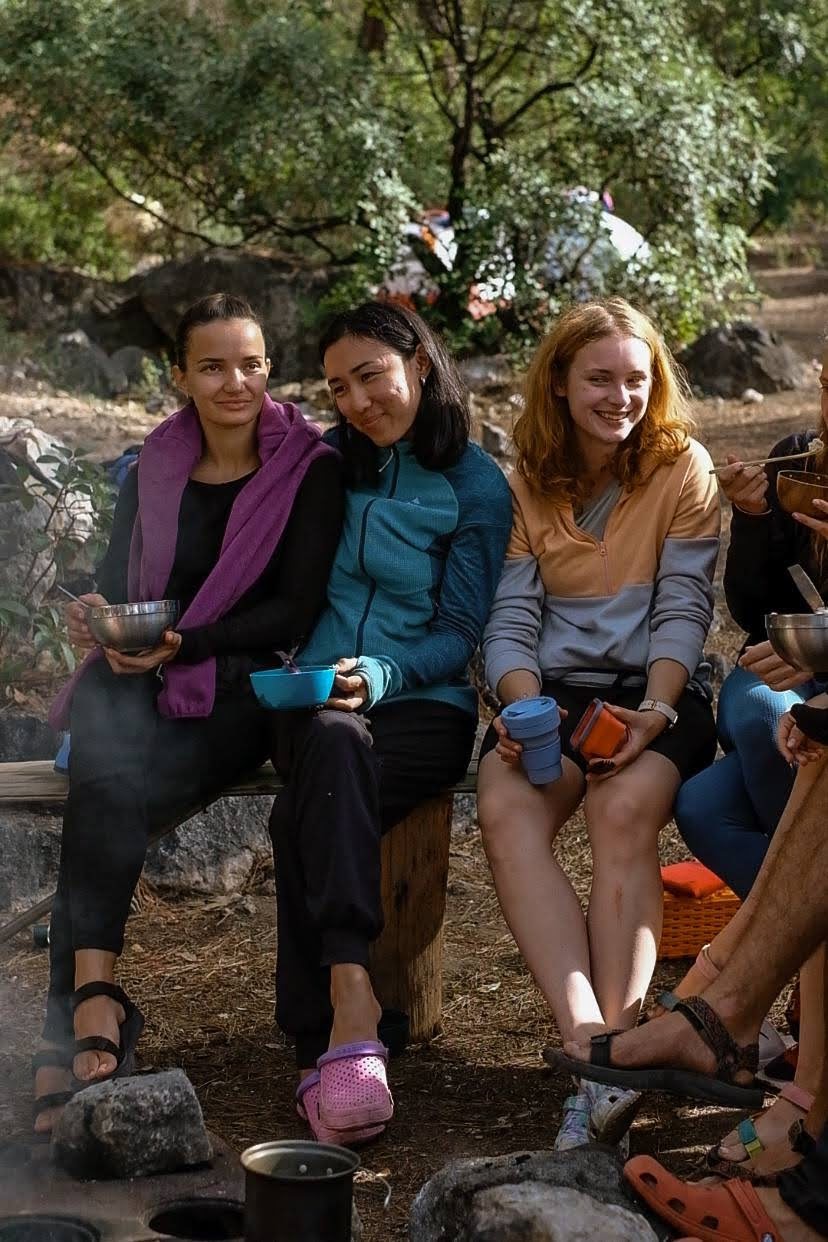 8 утра. Все как огурчики! Настоящие тусеры :) Дружный завтрак, сбор рюкзаков, погнали
