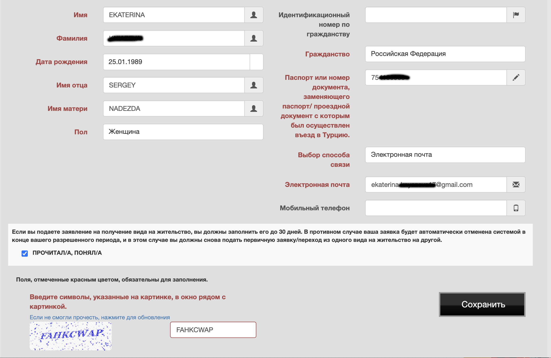 Заполнить анкету необходимо на сайте https://e-ikamet.goc.gov.tr/. Там можно выбрать русский язык. Далее указаны подробные этапы заполнения анкеты.