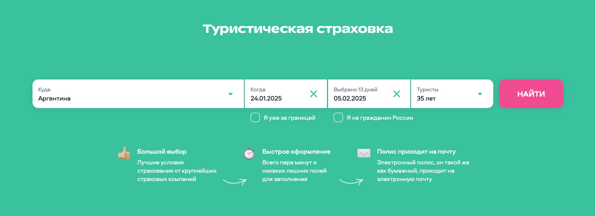Шаг 1. Указываем страну, даты, возраст