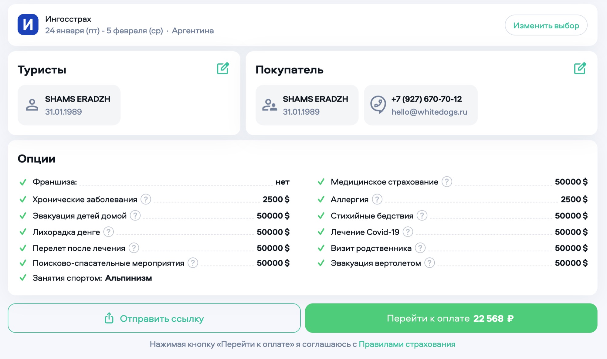 Вуа-ля! Наш полис готов. Поздравляю, теперь вы готовы к оформлению пермита на восхождение на Аконкагуа. Скачайте полис, в нём будет подробно описаны все детали страхования.
