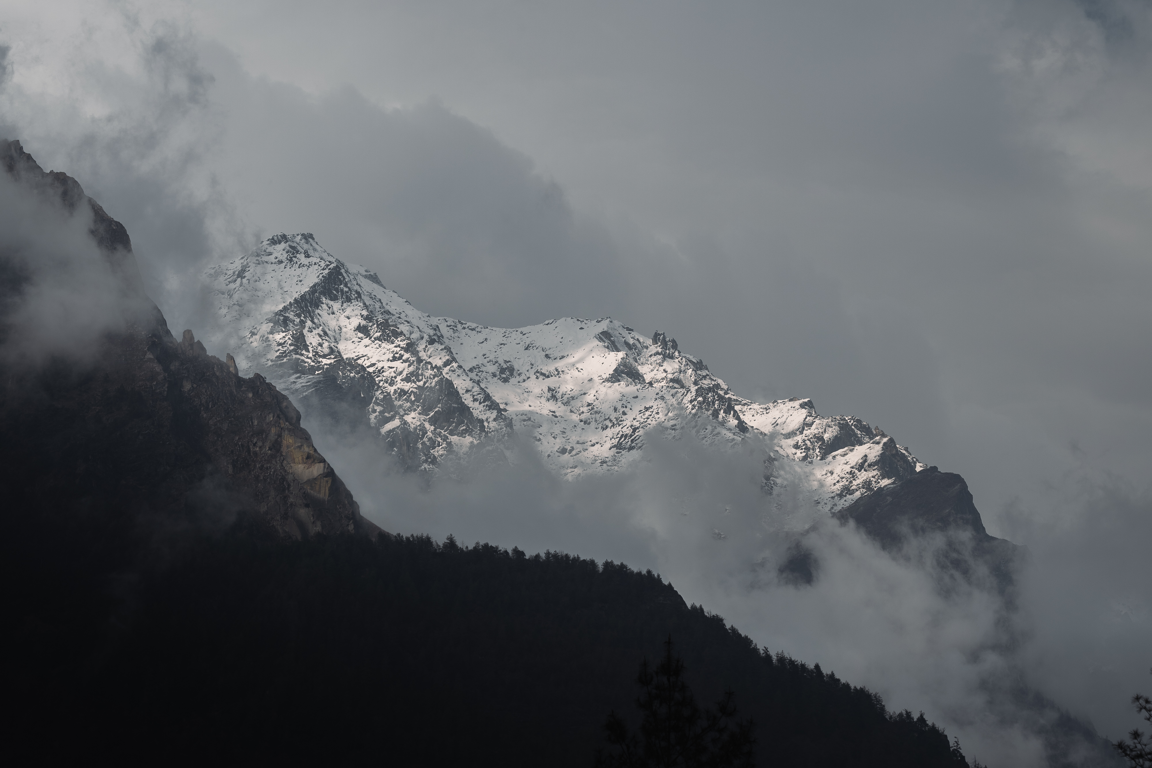 Идём по глубокому ущелью, вокруг отвесные стены, на склонах сквозь камни прорываются на волю маленькие деревья. Повсюду стекает вода. Первый подвесной мост. Не хлипкий на верёвках, как в фильмах про туземцев, а прям новенький и блестящий: металлический. Таких ещё тоже много будет. Флешбеки на Алтай и Восточную Ликийку. Прохладный сырой воздух, деревья, камни, зелень, постоянный шум воды. Через каждые пять-шесть километров какая-то деревня. Видно, что туристов здесь ждут. Почти на каждом доме какая-то вывеска: вкусная еда или лоджия, иногда горячий душ, вай-фай почти везде. Картины не портит – уходя за пределы деревни, оказываешься в Гималаях. Но сегодня мало что видно – небо затянуто, а дождь не прекращается. К полудню зашли в какой-то дом, заказали Masala tea – чай со специями. Разогревающий, с молоком. Внутри дома сухо и тепло. Очень красивая дочь у хозяев с белыми пёсиками. Переждали ливень. Когда начал стихать, мы вышли. Прошли через очередную деревню, поднялись к ступе, рядом с которой местные поют свои мантры и развешивают флажки. Флажки повсюду: на храмах, на деревьях, на заборах, на окнах домов и на электрических столбах. На флажках написаны мантры, и ветер, круглогодично живущий в этой долине, поёт их и уносит в небо.