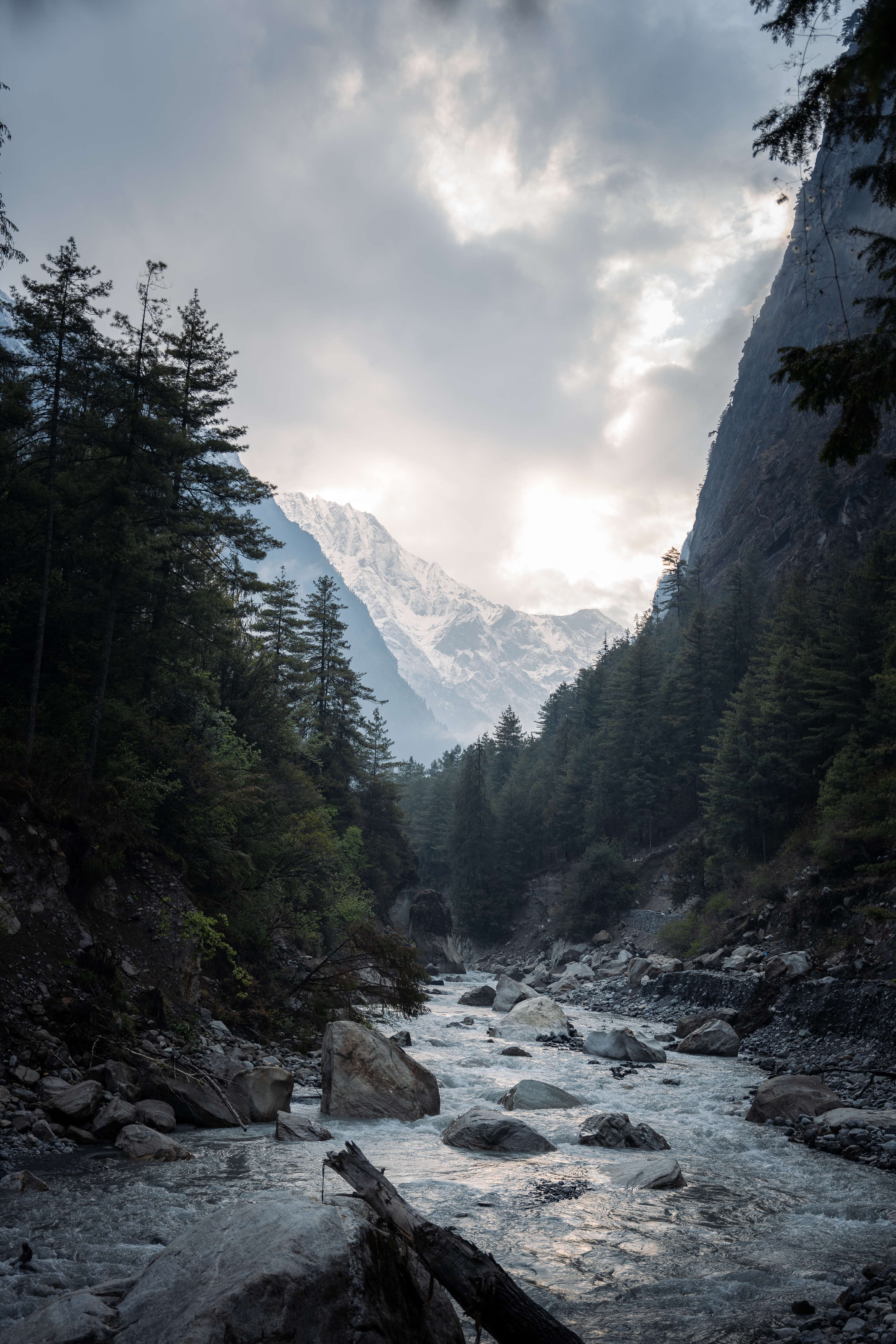 Единственная улица города оживает. Местные несут в руке нечто нашего кадило с благовониями, а во дворе каждого дома ждут можжевеловые ветки. Я не спросил, для чего это и что это значит, но наверняка что-то важное. Кофе вкусный. Пригревшись на солнышке, разделись до маек и шорт и вышли на тропу. Выходить рано утром отлично. - людей почти нет, солнышко приятно пригревает, но ещё не печёт. Идём по глубокому каньону вдоль реки. То тут, то там какой-нибудь водопад. Прячась в тени деревьев смотришь на заснеженные пики, стеной возвышающиеся над тобой.