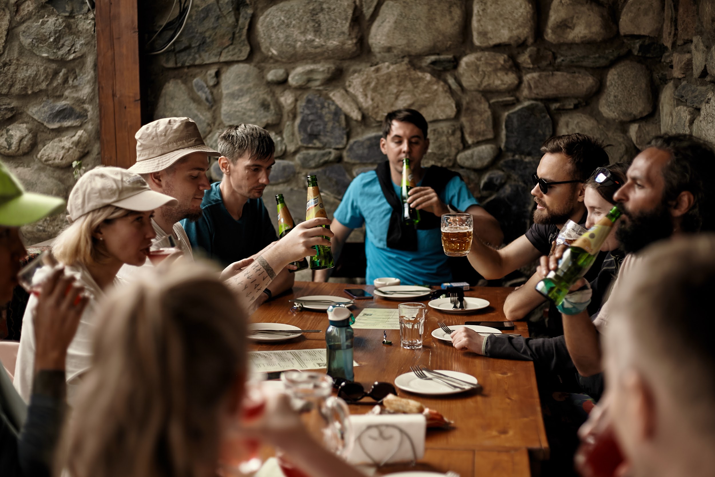 Дорога занимает без шуток 9 часов, и мы останавливаемся в городе Н, чтобы пообедать и размять ноги. А вечером в Тбилиси мы соберемся, чтобы отужинать в ресторане, угадайте чем?)))