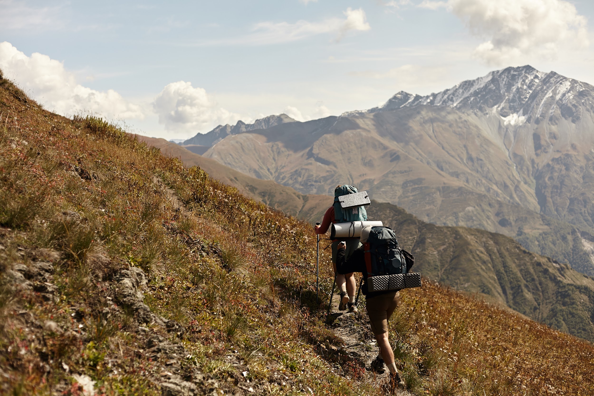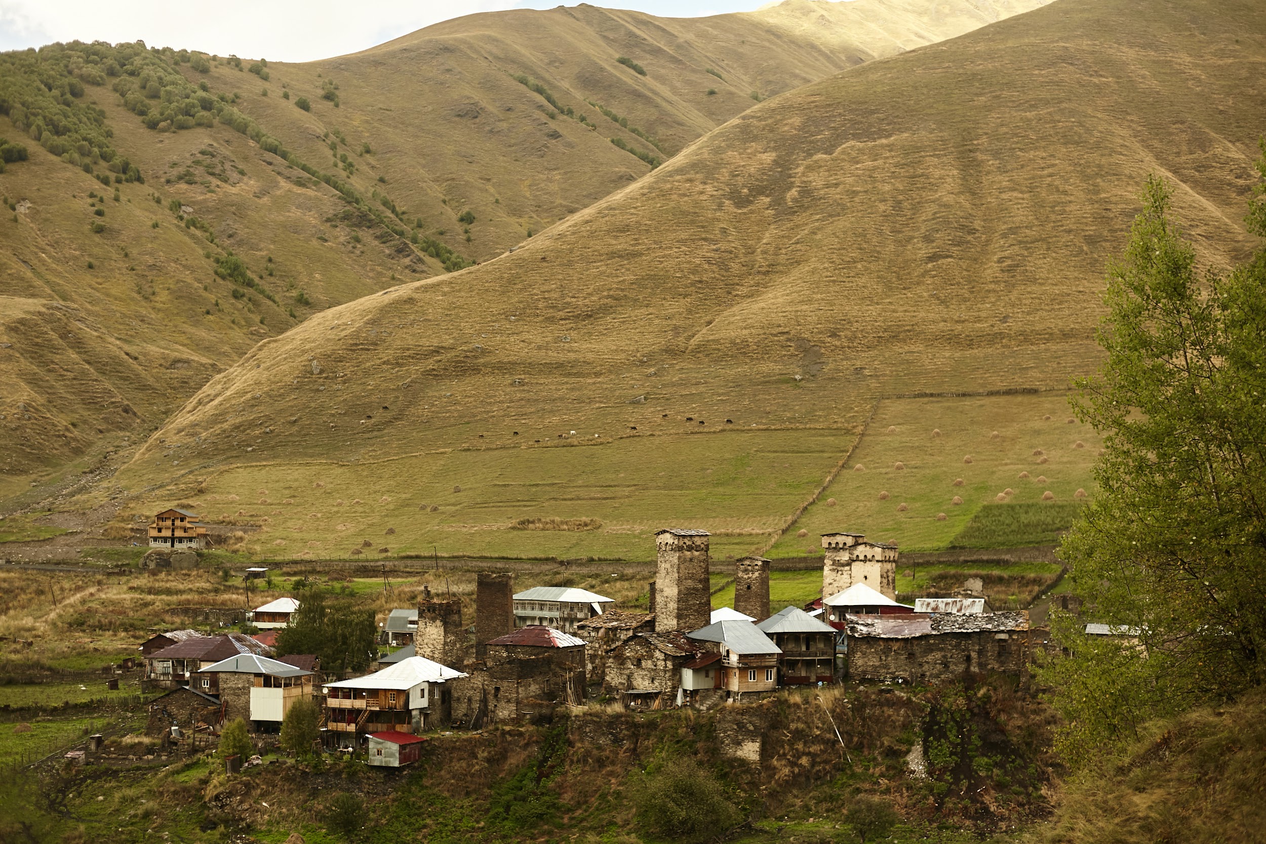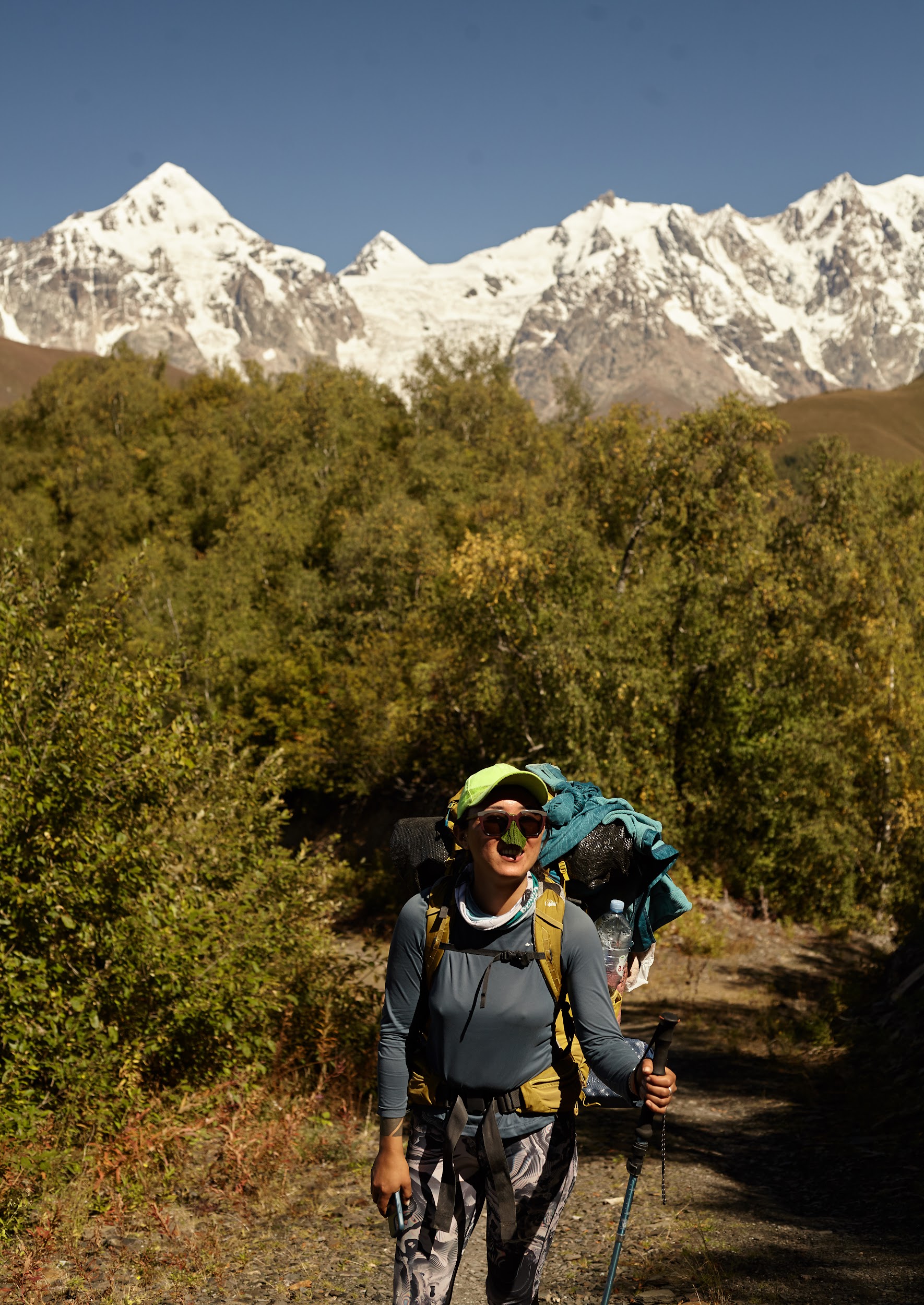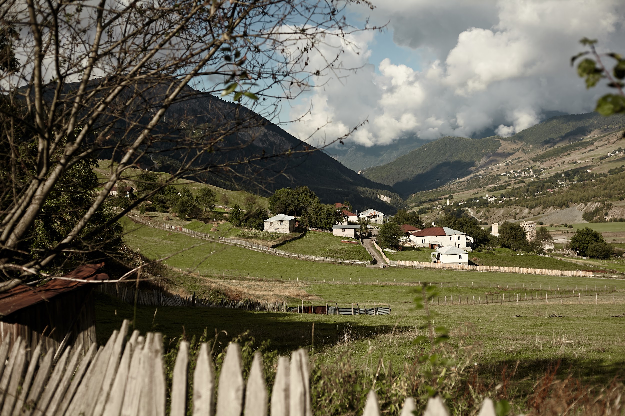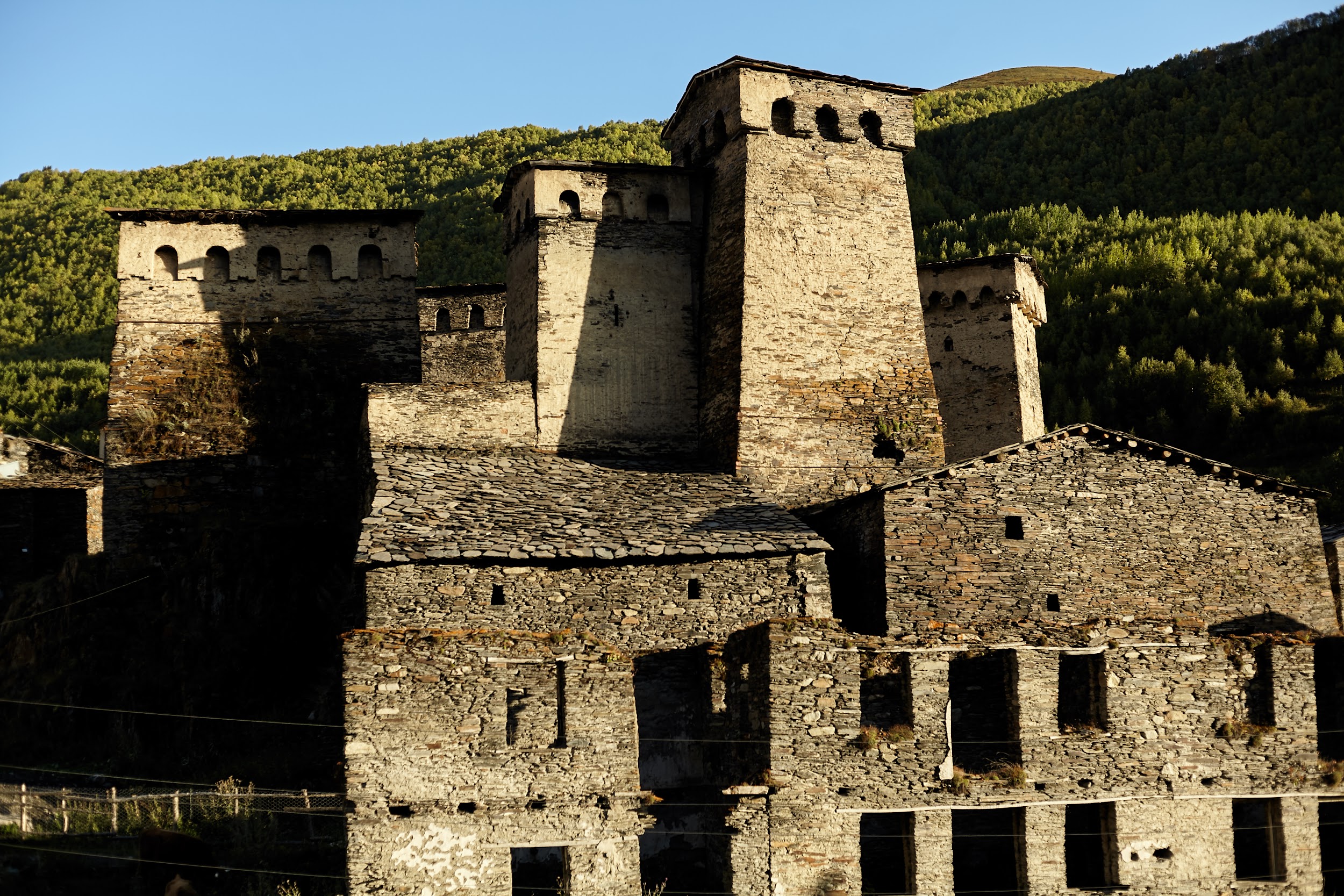В запасах у нас ещё одна трехлитровая бутылка вина, которая греет наши души. В этот день тропа ведет нас по дороге, но виды все также не подводят, а лишь заставляют останавливаться каждые 100 метров, чтобы сделать фото сванских башен.
