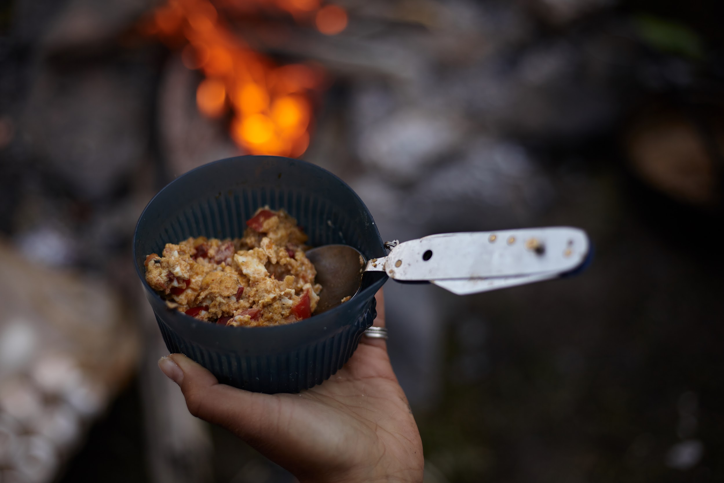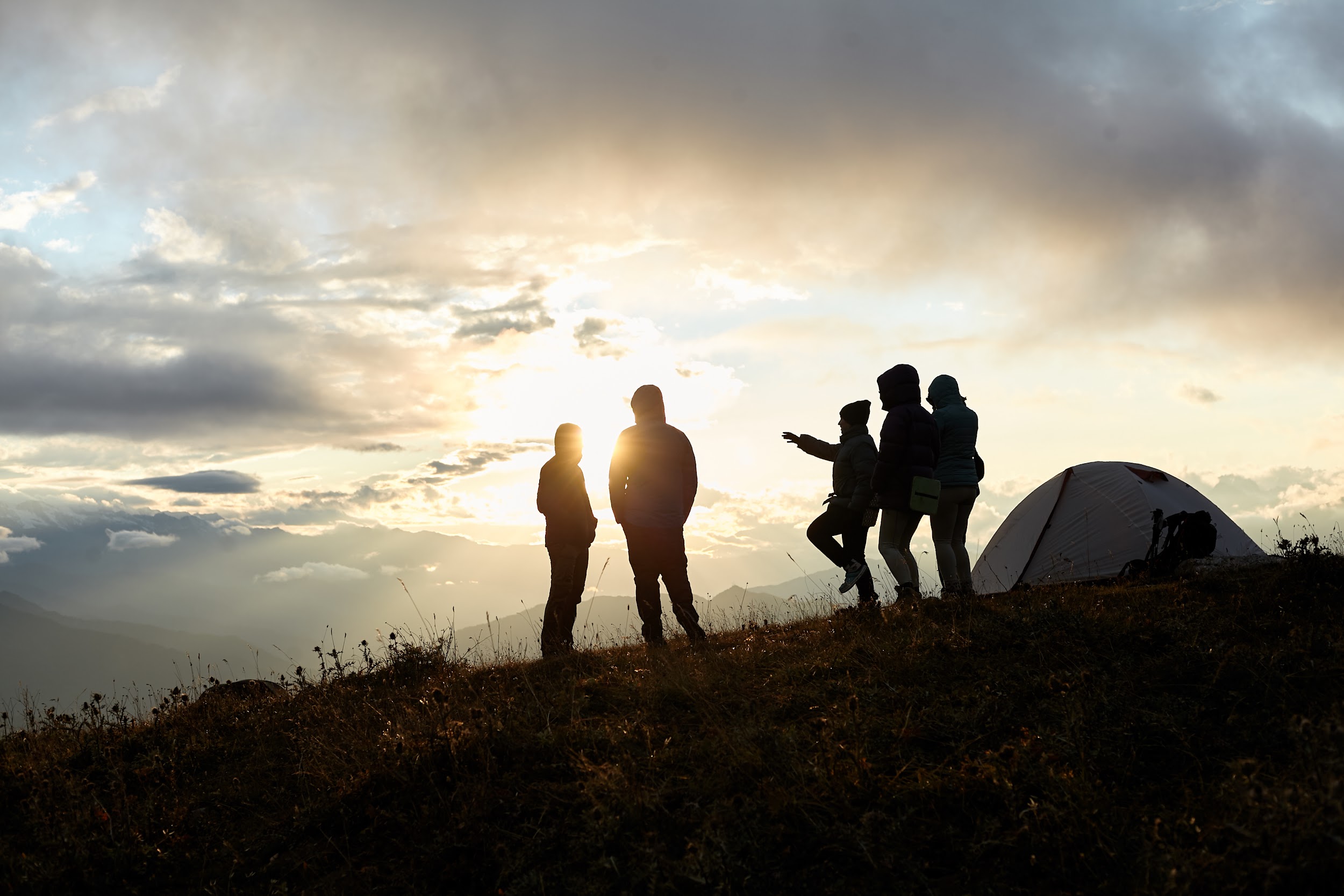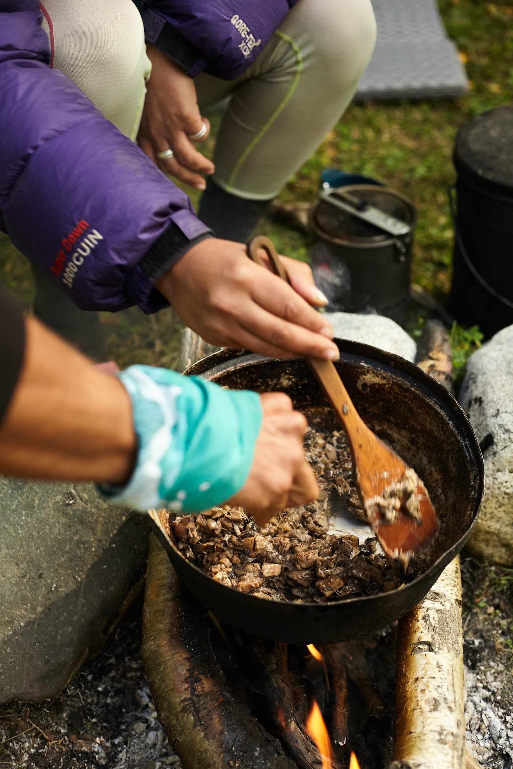Первая ночь в палатках, вечером уже сильно ветренно, ребята подмерзают, мы готовим первый ужин на костре.