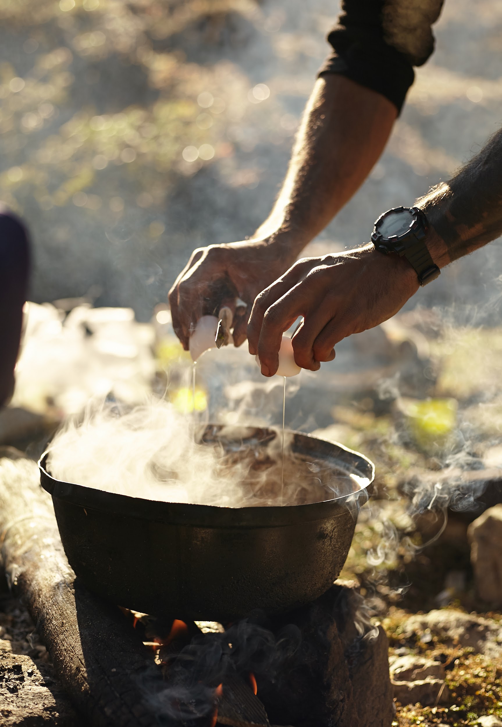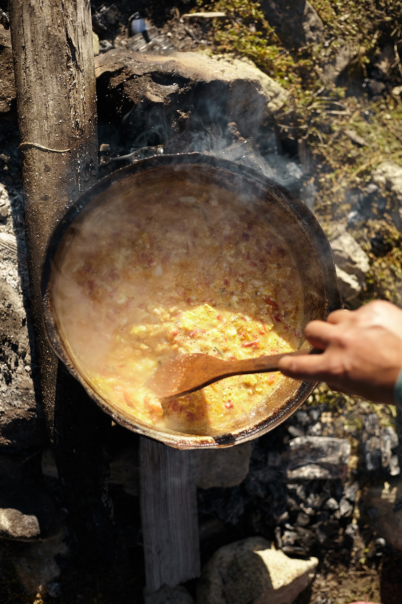 Дровами служит разрушенная постройка. Первый ужин от шефа Эраджа.