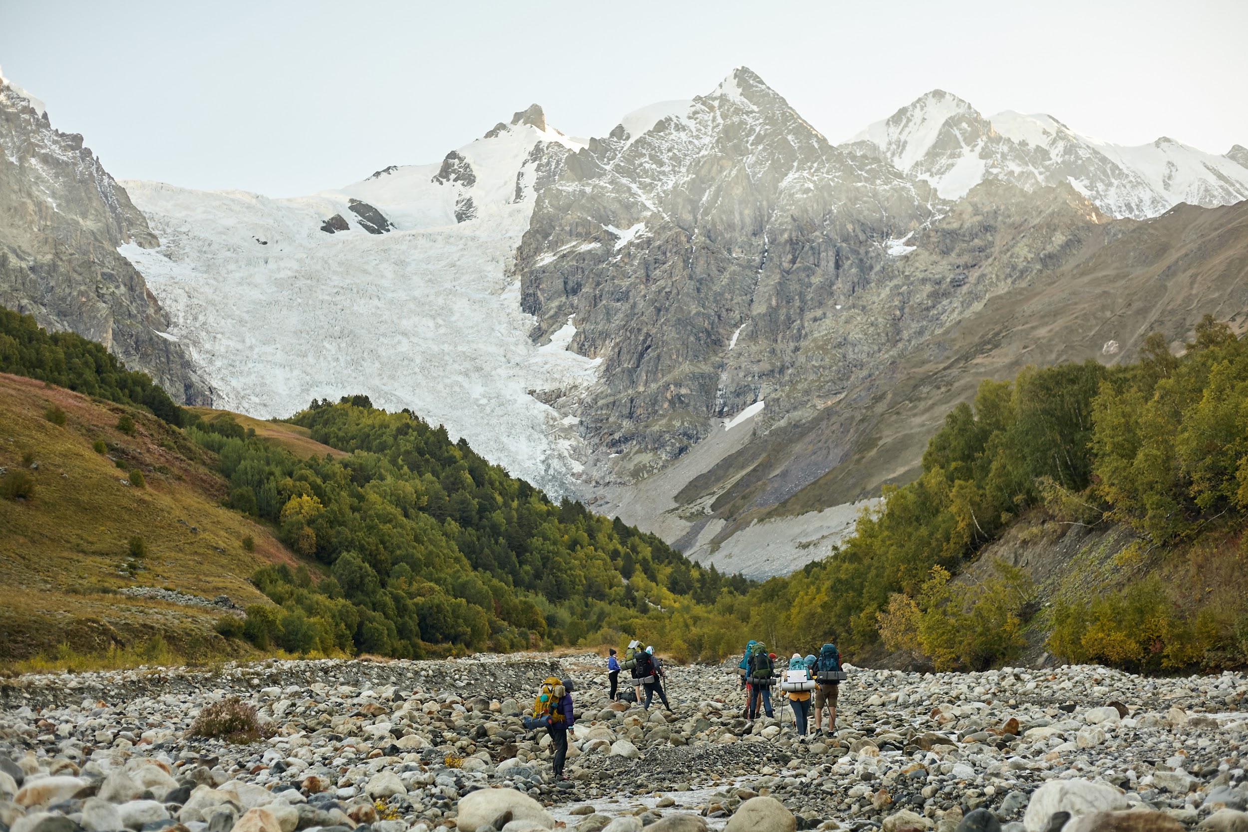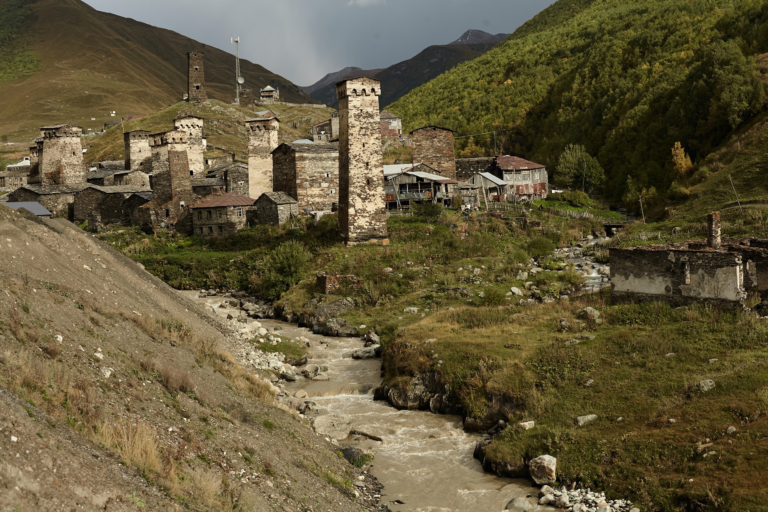 А далее плавно и легко спускаемся в долину реки Ингури через покинутый поселок Халде в Давреби, обедаем