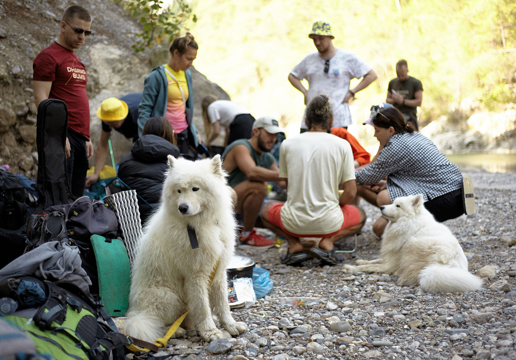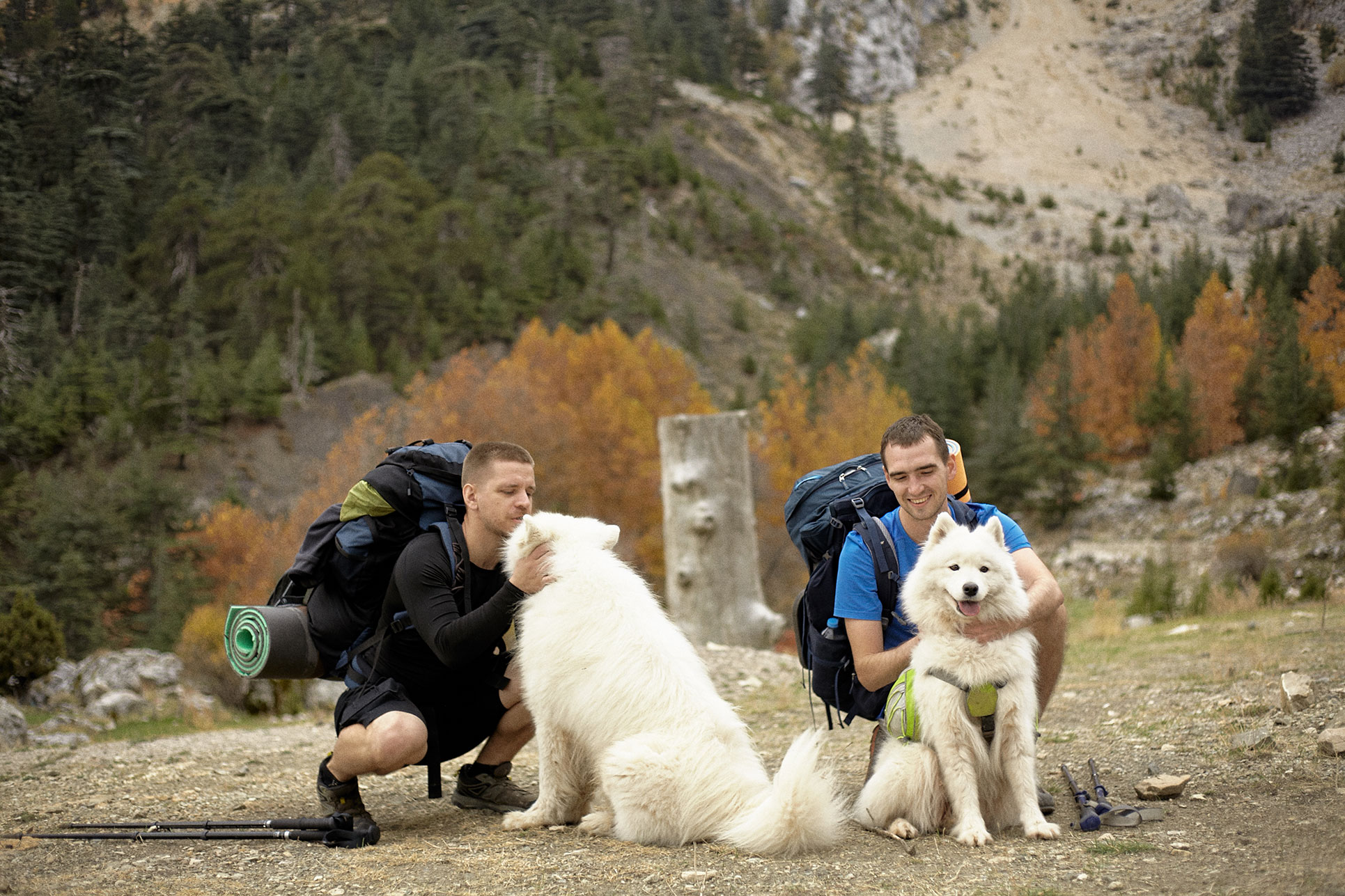 Идея, конечно же, родилась еще и от того, что с нами было две собаки. И не просто две собаки, а два самоеда. Во-первых, это чудесное совпадение, а во вторых - это просто очень мило. Белый и Варя состоялись как два полноценных участника похода