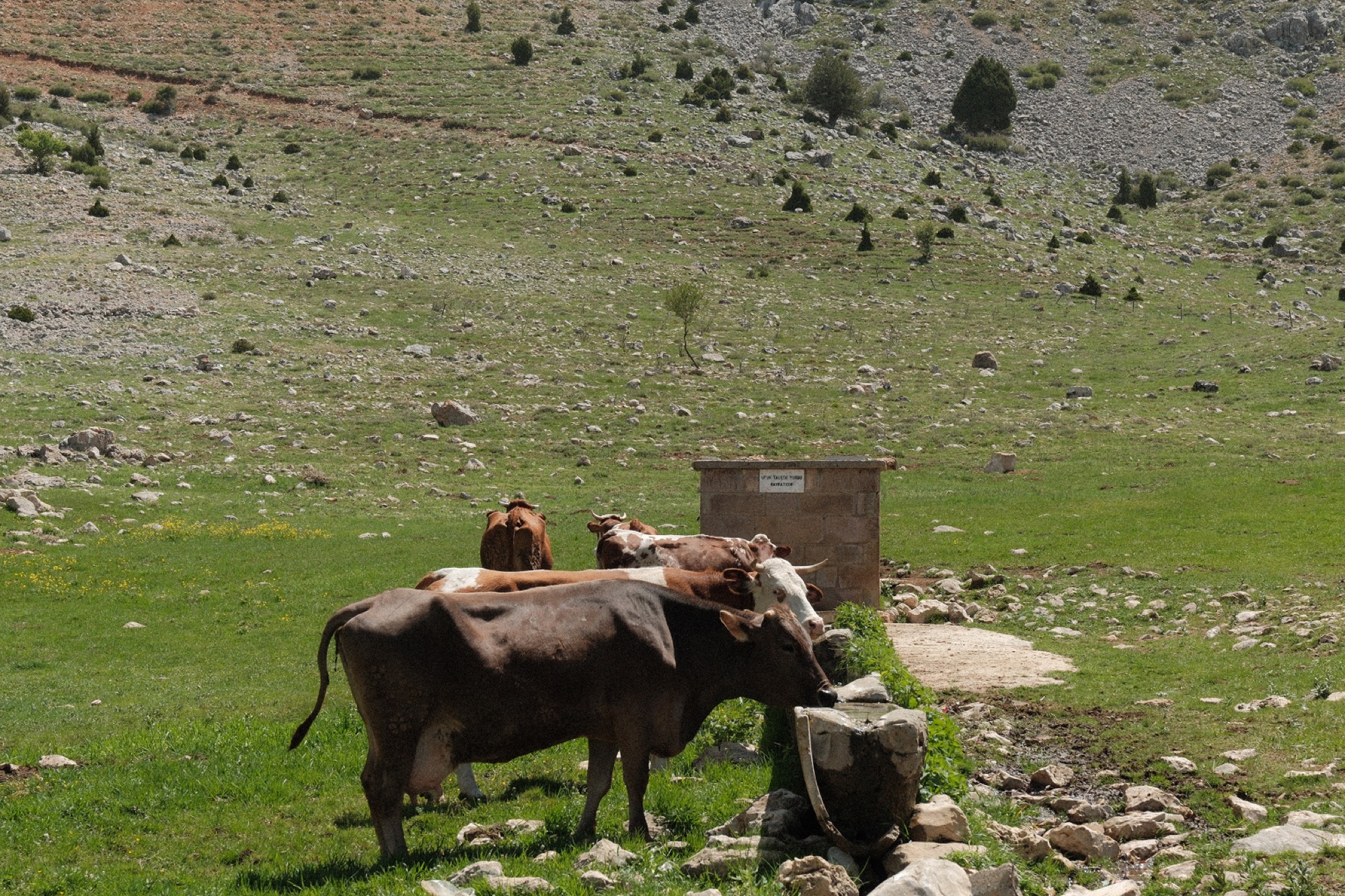 Через километр пути встречаемся со стадом овец, пастухом и пастушьими собаками. Юра знакомится с одной, выставив той руку на принюхаться и понять, несем ли угрозу или нет. Угрозу не несем, но, гав-гав, уходите отсюда, стадо в обиду не дам. Ну мы и ушли знакомиться с любознательными коровами у источника.
