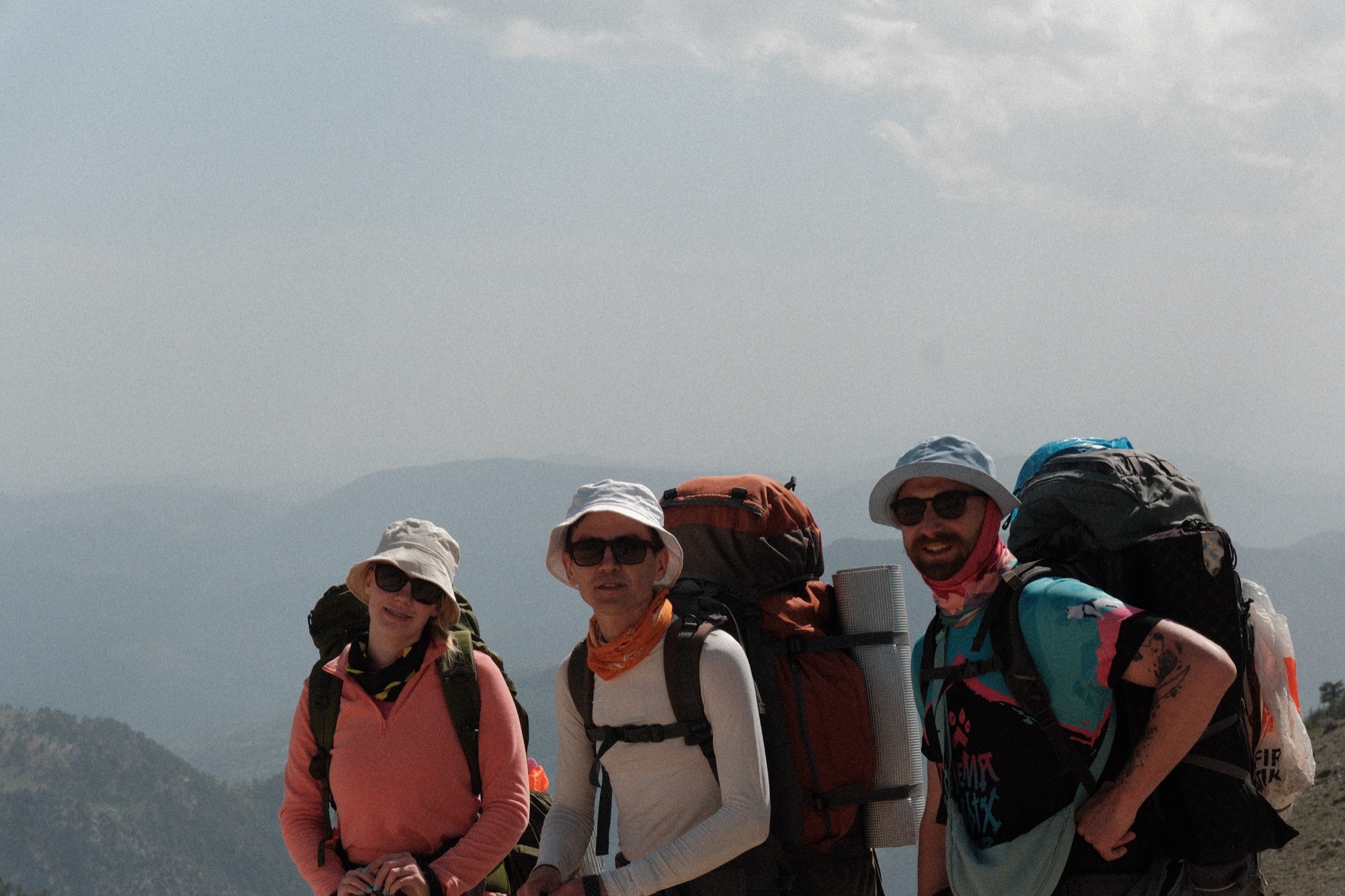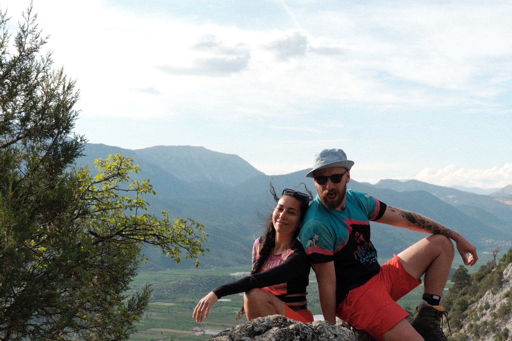 Под конец набора высоты увидели то, ради чего нужно ходить вверх с рюкзаками. Вид на плодородную долину, из которой торчали острые холмы как на спине дремлющего дракона из “Сказки странствий”. Устроили фотосессию заслуженных улыбок.