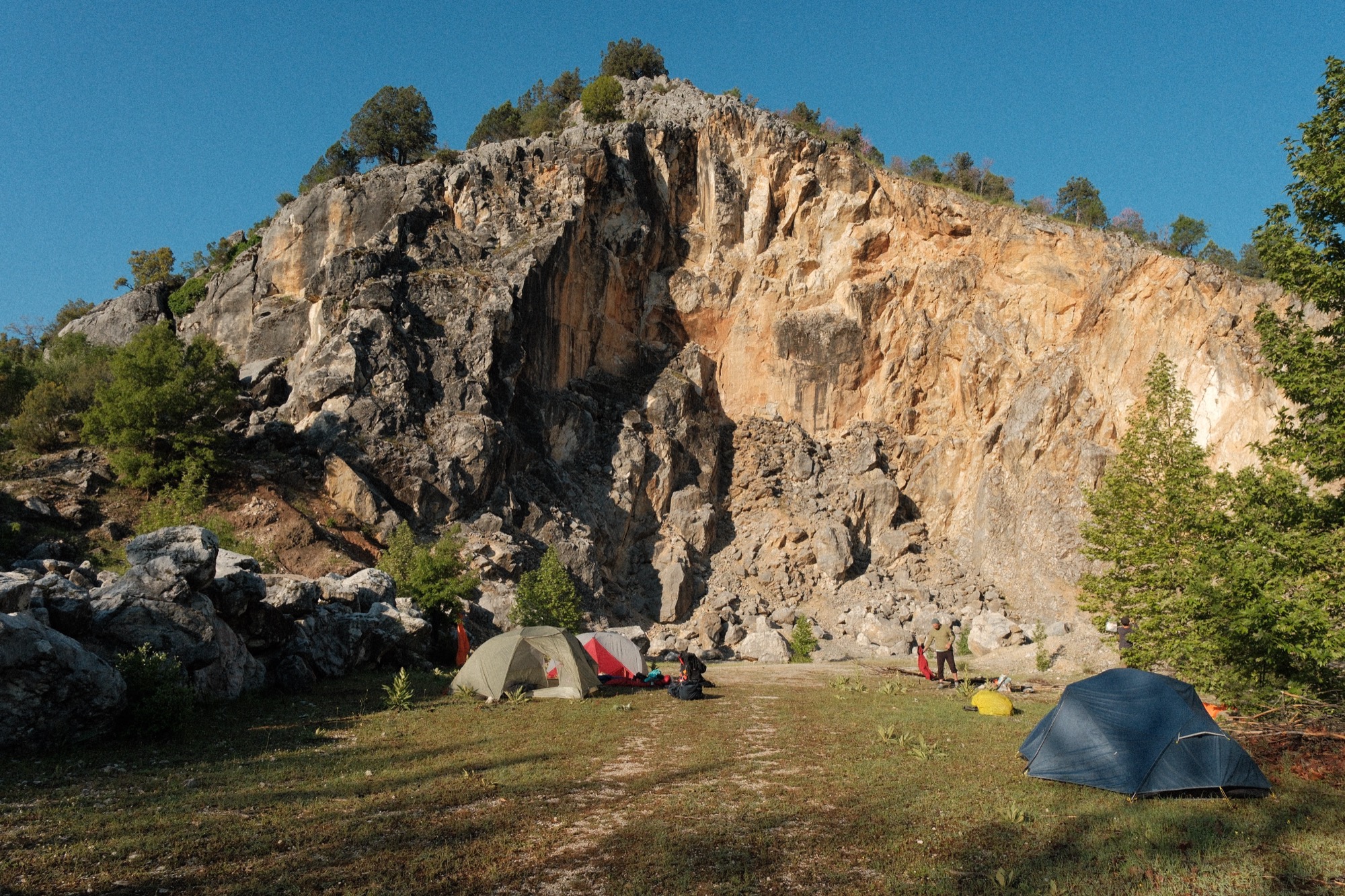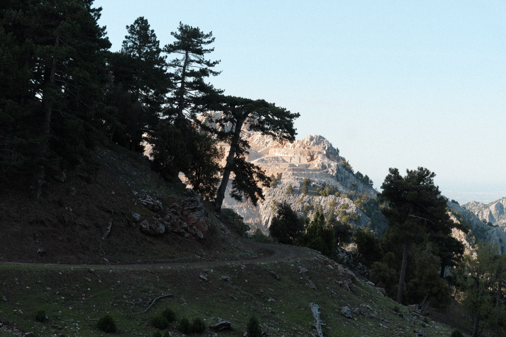 Просыпаюсь и смотрю на колышущиеся ветви. Закрываю и снова открываю глаза. Свежий воздух сладостно проходит в легкие. Веду молнию спальника и выныриваю наружу в позе ошалелой ящерицы. Смотрю на срезанную гору и антальское наваждение.