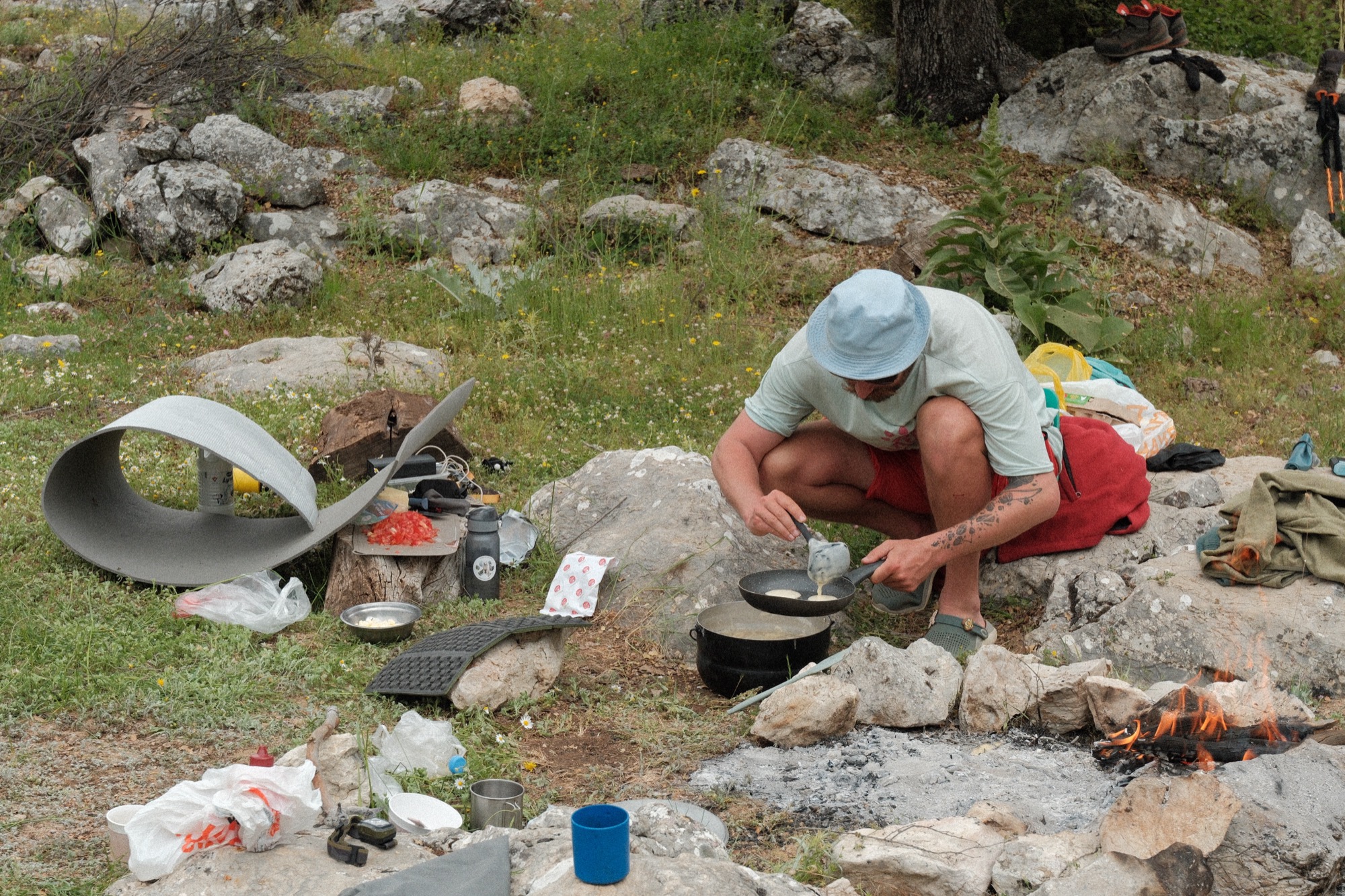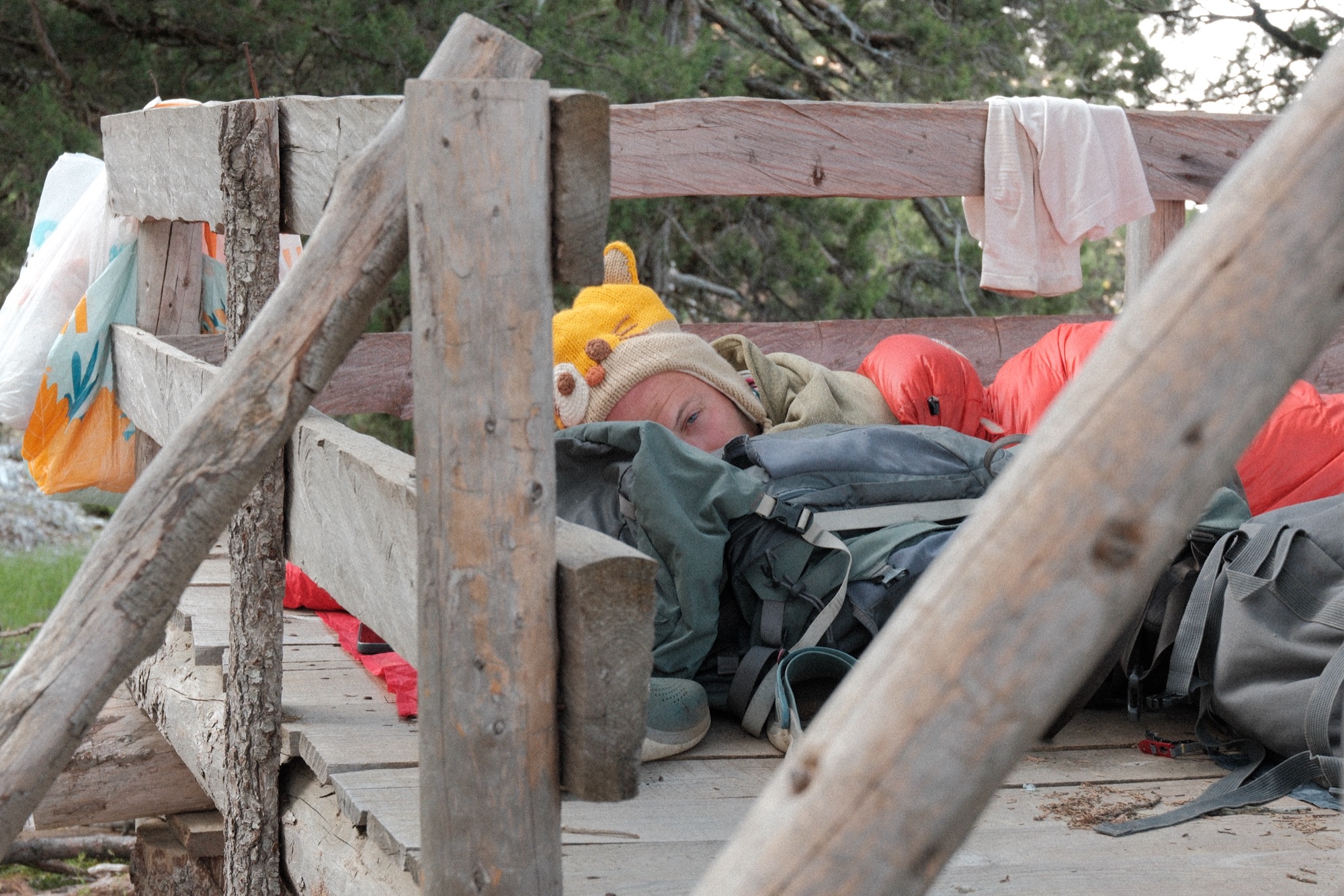 Стоянка была на прекрасной поляне у реки, где почти сразу окунулись в естественном чане чуть выше пояса. На каскаде камней застирали носки. Неустанно чилили. Жене Линар даже устроил горячую воду для душа. Ну что за роскошество!