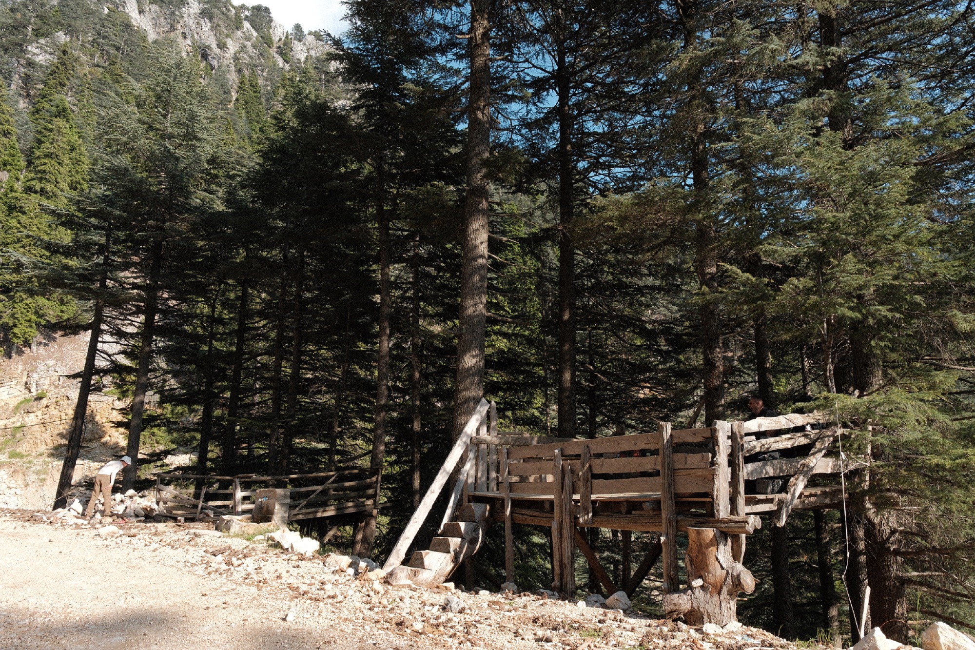 Путь красоты и созерцания довел до места стоянки, с которой открывался вид–разъёб. Огоньки Анталии, срезанная гора и прекрасные долины по одну сторону, закатное солнце и озеро по другую. Место сна – деревянная платформа, Дом уюта и ровной поверхности. Тут было все! Туалет. Костревище. Закатные точки. Источник. Даже мужичок вылез из небытия. Улыбающийся и кажущийся счастливым, он поздоровался, угостил сигаретой и завел разговор понятно с кем. Линарчик перевел, что тот работает на карьере, а сюда пришел насладиться видом.