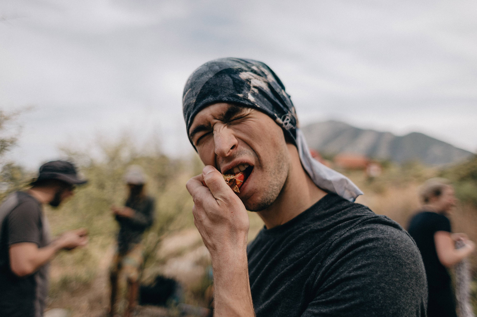 Перед главным подъемом сделали привал на обед. Парни были настолько обессилены, что начали игру в лесенку