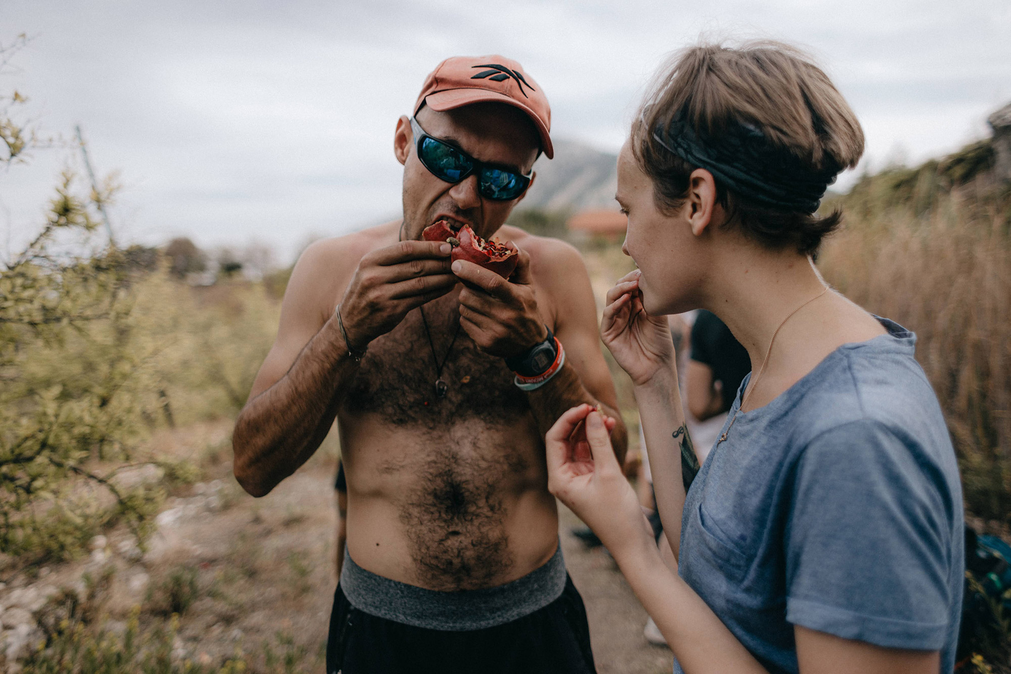 И вот мы уже шагаем по тропе. По пути нам попадается гранатовый сад. Как можно отказаться от такого искушения