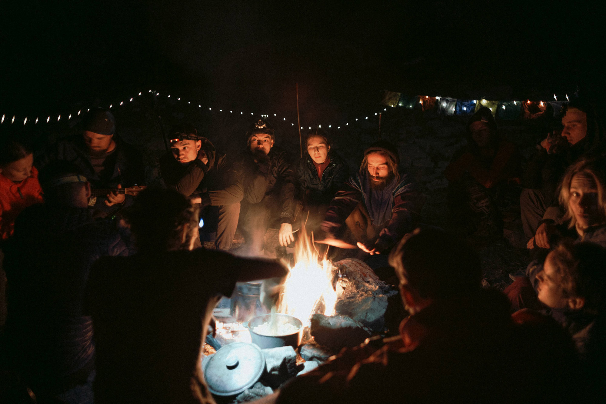 Стоянка получалась, что надо. Добротный костёр, гирлядна, тёплая компания, душевные разговоры. А также check in (это каждый высказывается по поводу пройденных дней, что понравилось, что не понравилось)