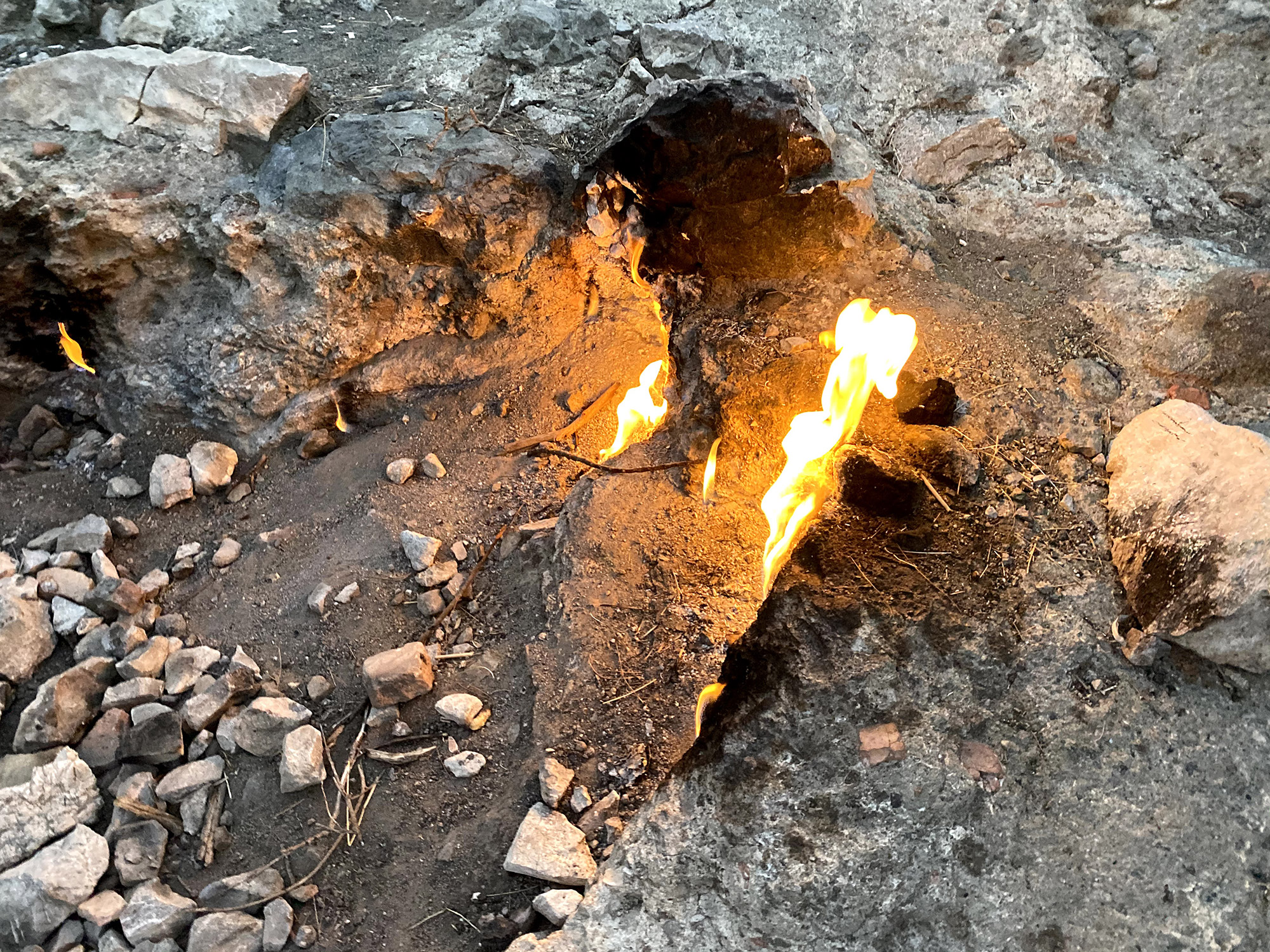 Это места, где природный газ выходит сквозь камни на поверхность и горит вечным огнём