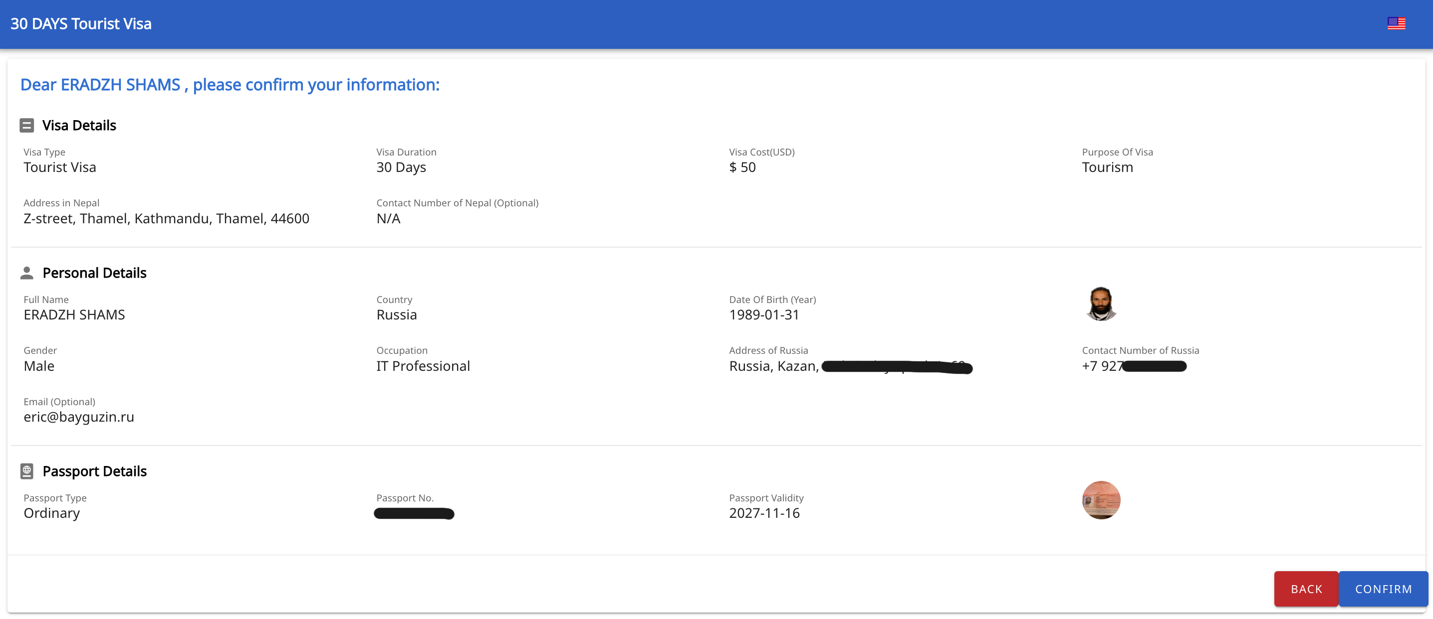 Оформляется виза, как я уже сказал, прямо в аэропорту Катманду по прилёту. Можно оформить на 15 дней (30$), 30 дней (50$) или 90 дней (125$). Чтобы сократить время оформления визы при прилёте заранее можно заполнить анкету здесь. Там всё понятно, но на всякий случай покажу пошагово