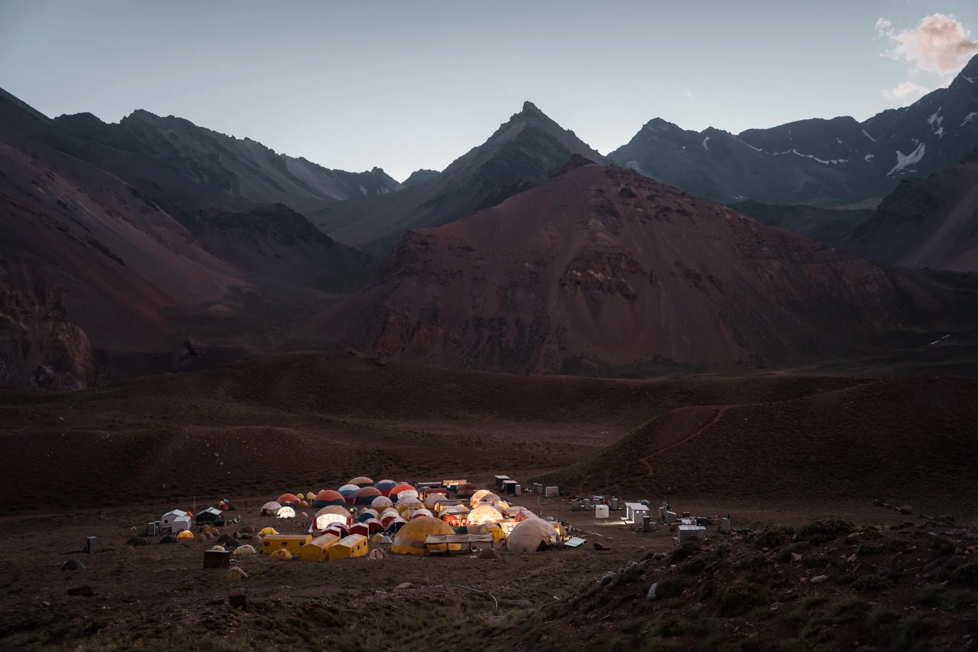 По живописной тропе налегке сходим на акклиматизацию к леднику Plaza Francia на высоту 4100 м. Радиалка не простая: 11 километров с набором высоты 900 метров и столько же назад. Но оно того стоит: наверху выпьем чаю с великолепным видом.