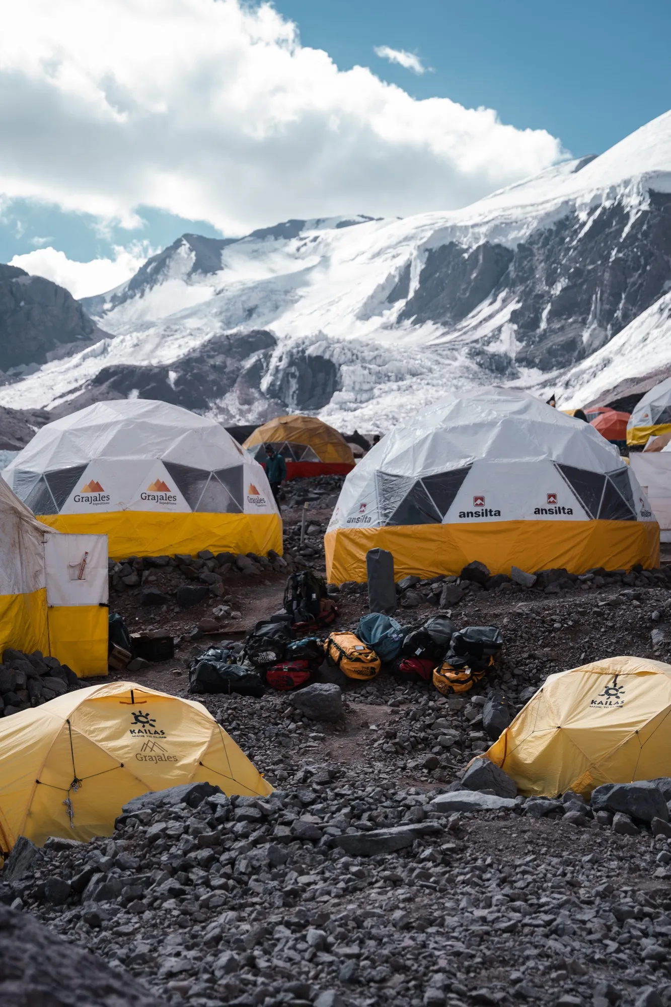 Продолжаем нашу акклиматизационную стратегию. Сегодня налегке наберем 700 метров по довольно крутому склону и проверим своё состояние на высоте 5000 метров в лагере Канада. Ночуем на высоте 5000 метров.