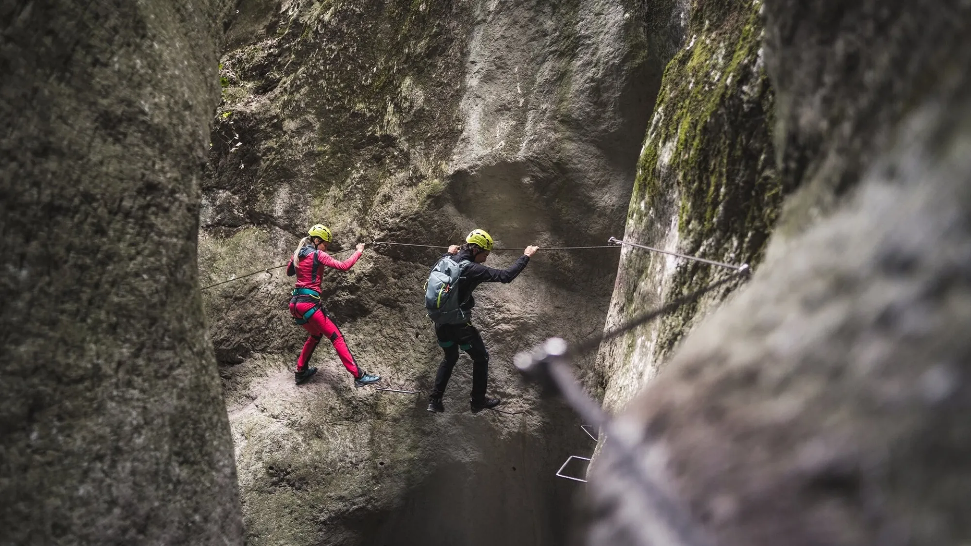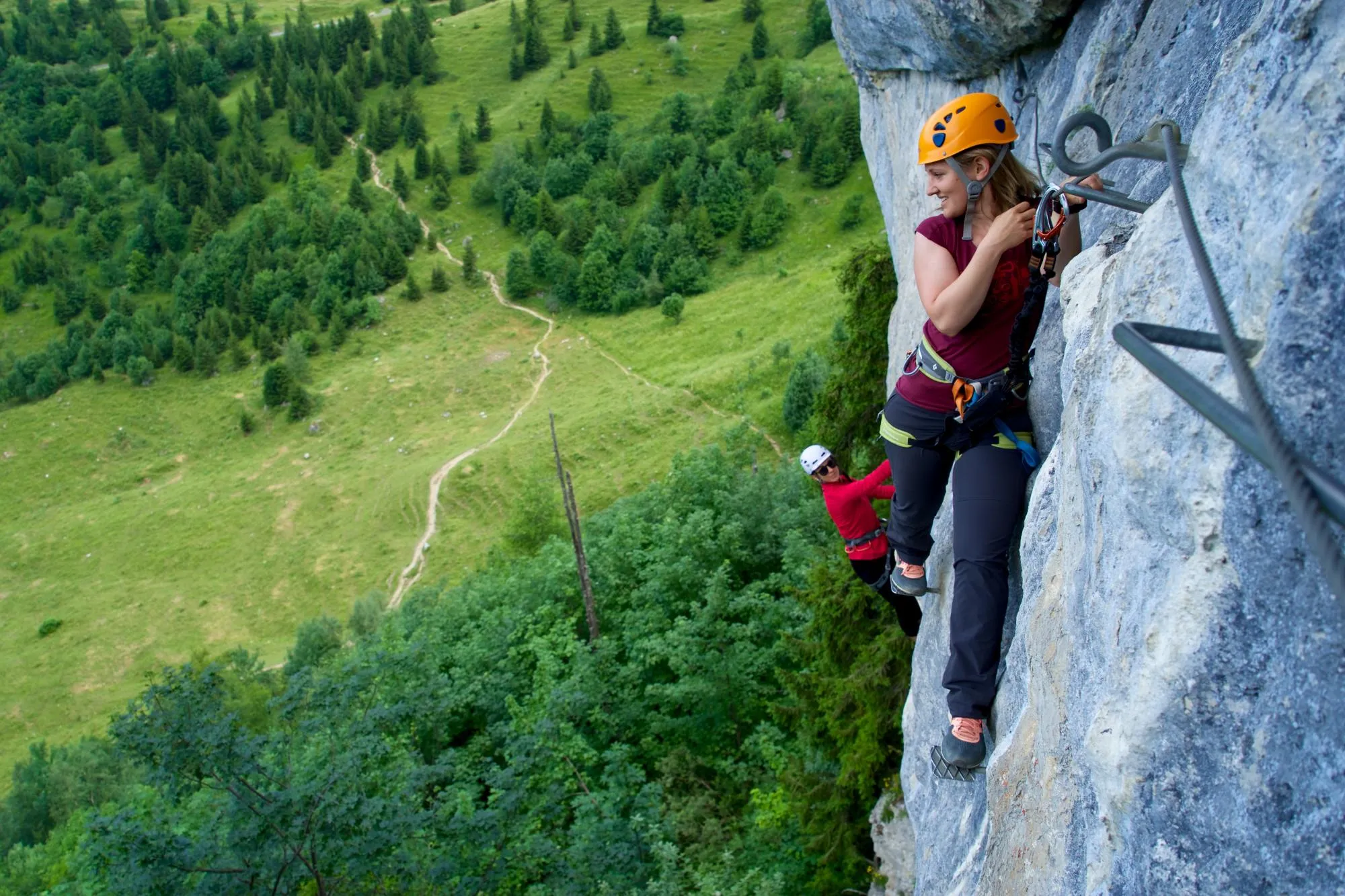 Виа Феррата - это оборудованный для альпинизма маршрут по скалам и представляет собой линейный маршрут, где установлены стальные тросы и другие металлические элементы, облегчающие продвижение и обеспечивающие страховку. Название происходит от итальянского "via ferrata" (железная дорога), оборудованная тросами, мостами, лестницами и различными вспомогательными опорами и элементами, такими как ступени, перекладины. Эти элементы помогают альпинистам перемещаться по скале и обеспечивают безопасность. Это как веревочный парк, но в настоящих горах среди головокружительных пейзажей.