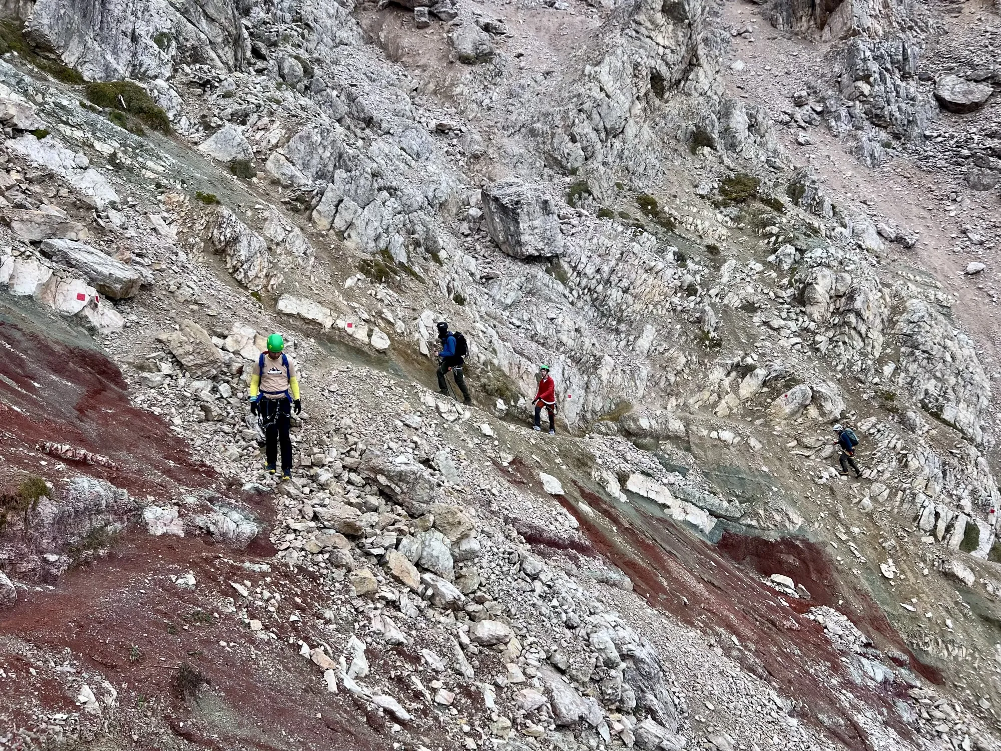 Завтракаем и выезжаем на трассу Тофана ди Розес — одну из самых впечатляющих вершин Доломит. Обучение технике прохождения (2 подъёма), перекус, траверс вдоль скалы (8 км, набор 600 м, категории 2А и 2Б). Затем едем к водопадам Cascade di Fanes — маршрут под струями воды и через каньон с водопадами. Вечером, при хорошей погоде, встречаем закат на перевале Пассо Джау.