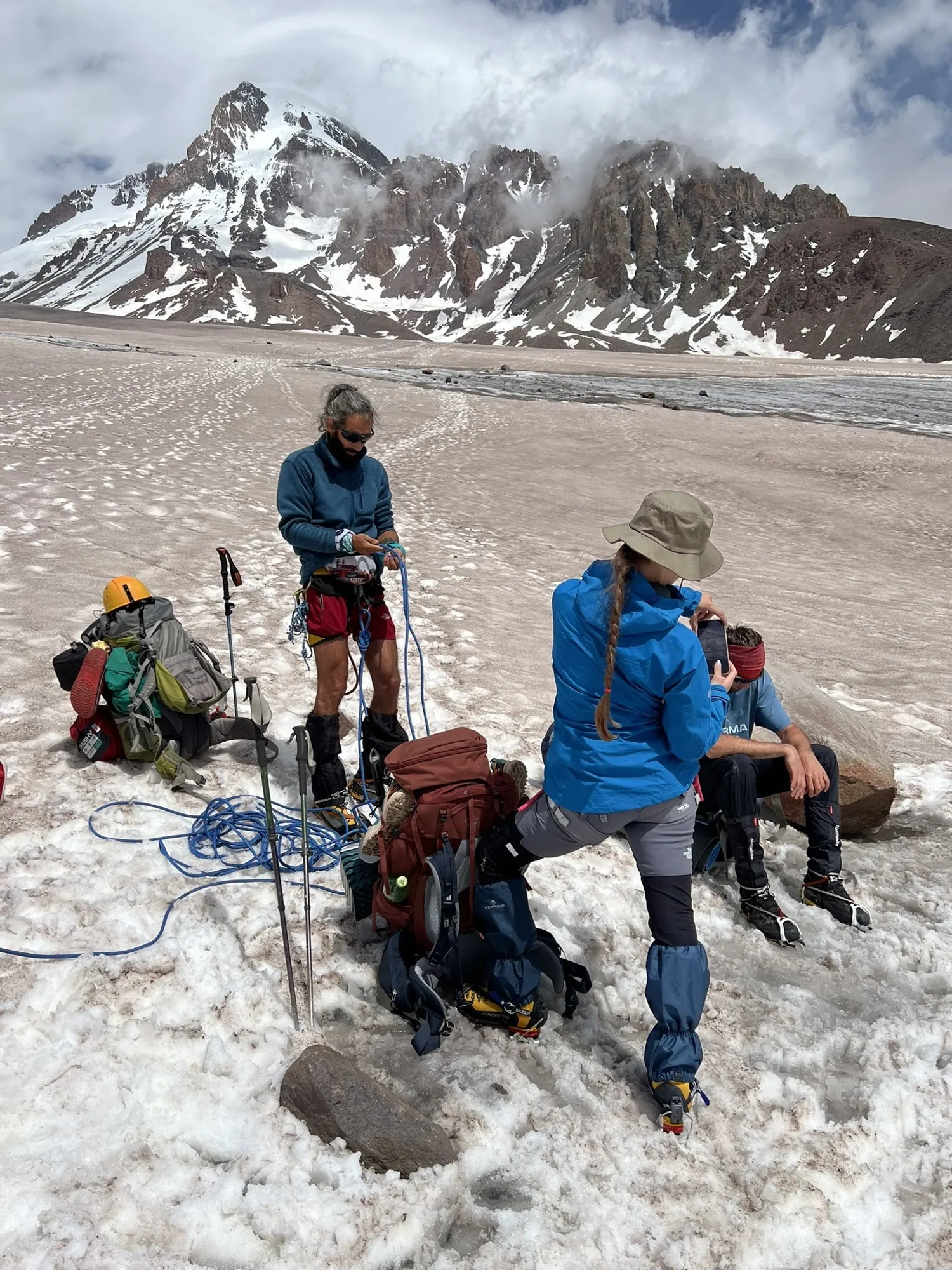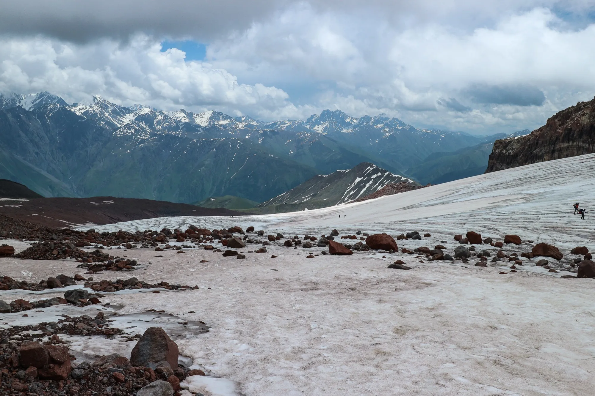 Завтракаем, собираемся и выходим в сторону ледника Гергети. Уже здесь нам понадобятся кошки. Ровным темпом дойдём до нашего первого высотного лагеря "Приют Бетлеми", более известная под названием "Метеостанция", расположенная на высоте 3650 метров.