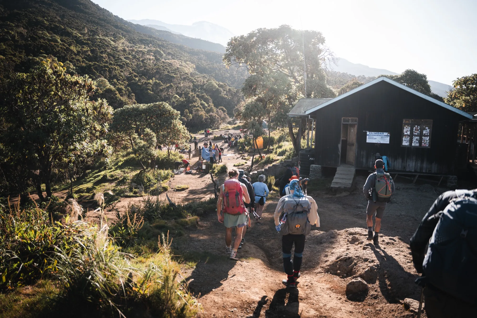 Сегодня мы продолжаем набор высоты. Мы покидаем зону влажного леса и идём через вересковые пустоши. Склон становится круче. Переход короткий, но достаточно сложный. По прибытию в кемпинг мы пообедаем, а после совершим небольшой акклиматизационный выход – это легкий трекинг с небольшим набором высоты для того, чтобы ускорить процесс акклиматизации. Такие выходы помогут увеличить шансы на успешное восхождение на вершину и обезопасить вас от последствий горной болезни. После него спать будет гораздо комфортнее, а самочувствие на следующий день лучше. Ночёвка на высоте 3810 м. в лагере Шира