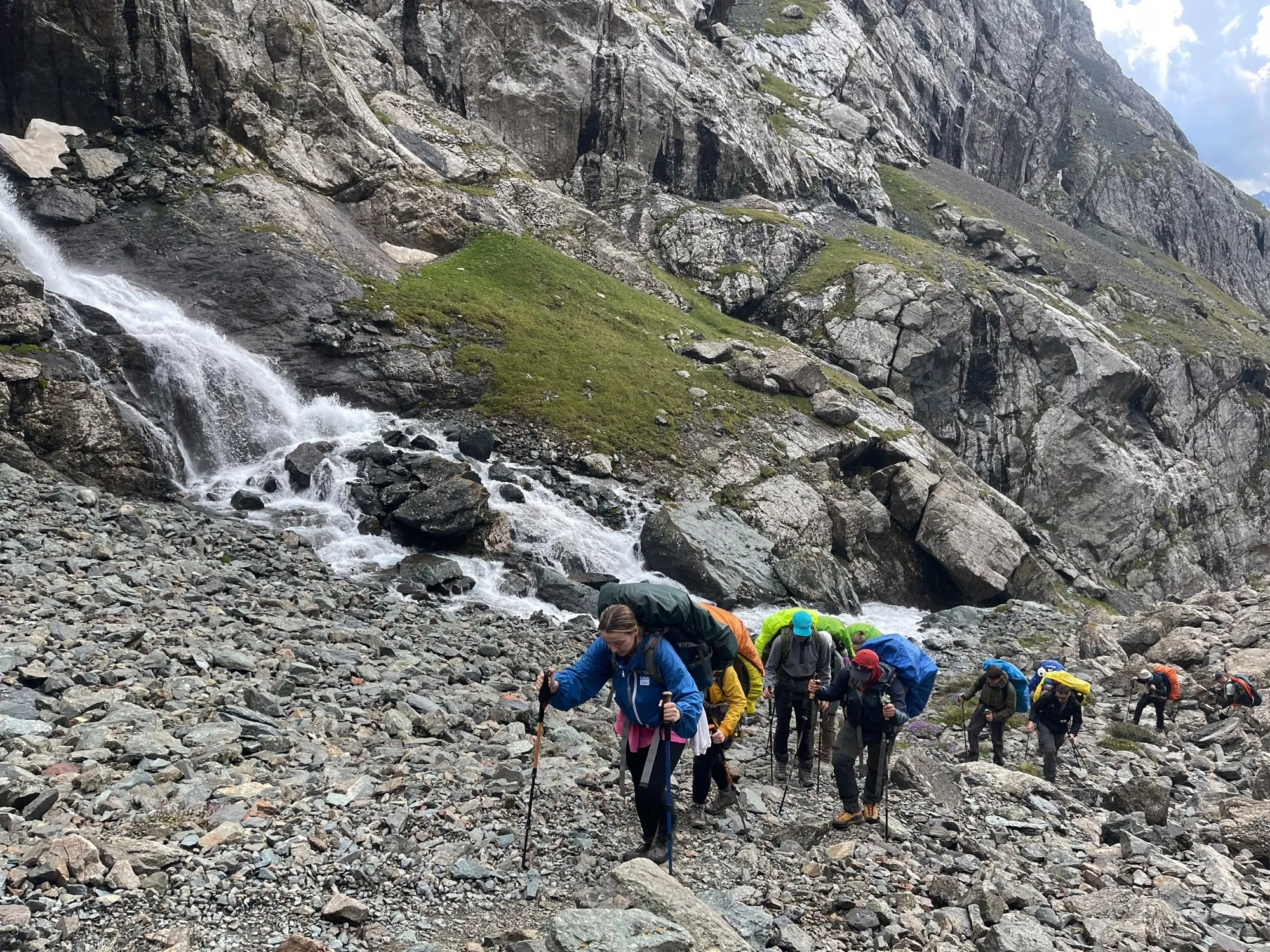 Сегодня непростой день, нам предстоит большой набор высоты вдоль реки Кургак Тор с ее водопадами, до озера Ала-кёль на высоту 3525 м - одному из самых крупных высокогорных озер Киргизии. Ала-кёль в переводе означает “пестрое озеро”, которое под разным освещением меняет свою окраску от бледно-серого до ярко-бирюзового. Длина озера почти 3 км, ширина 500 м, глубина до 70 м. На ночевку станем на уютных стоянках прямо возле озера.