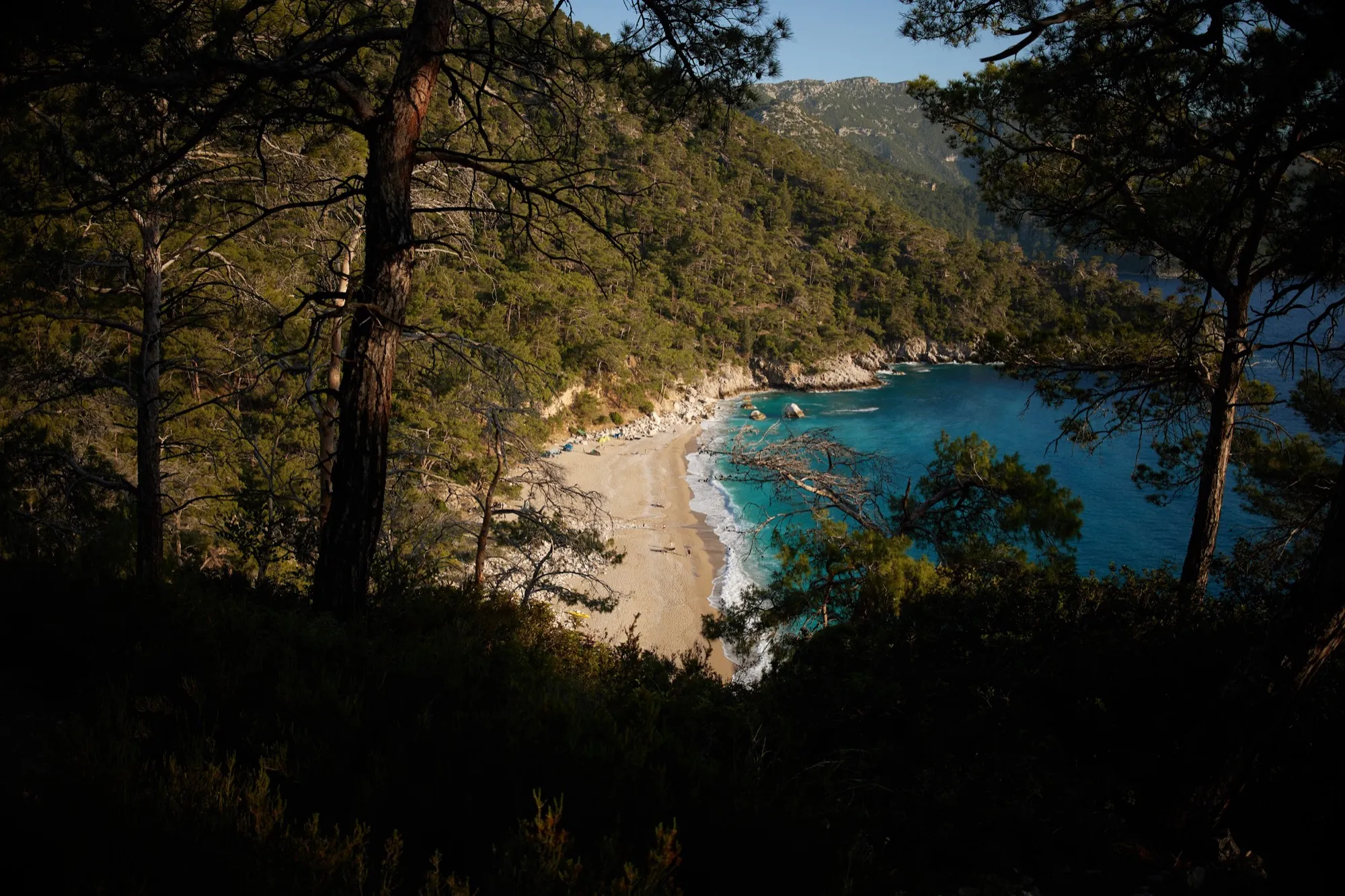 Завтракаем, грузим вещи в машину и выдвигаемся в путь. Проходим пляж и кемпинг Акташ, купаемся и идём в деревню Кабак с живописной бухтой, где также купаемся и обедаем. Продолжаем движение вдоль бухт к пляжу с приятным названием Paradise beach, предварительно набрав воды в поселке, т.к. на пляже не всегда есть вкусная пресная вода. Но ночевка здесь стоит того!