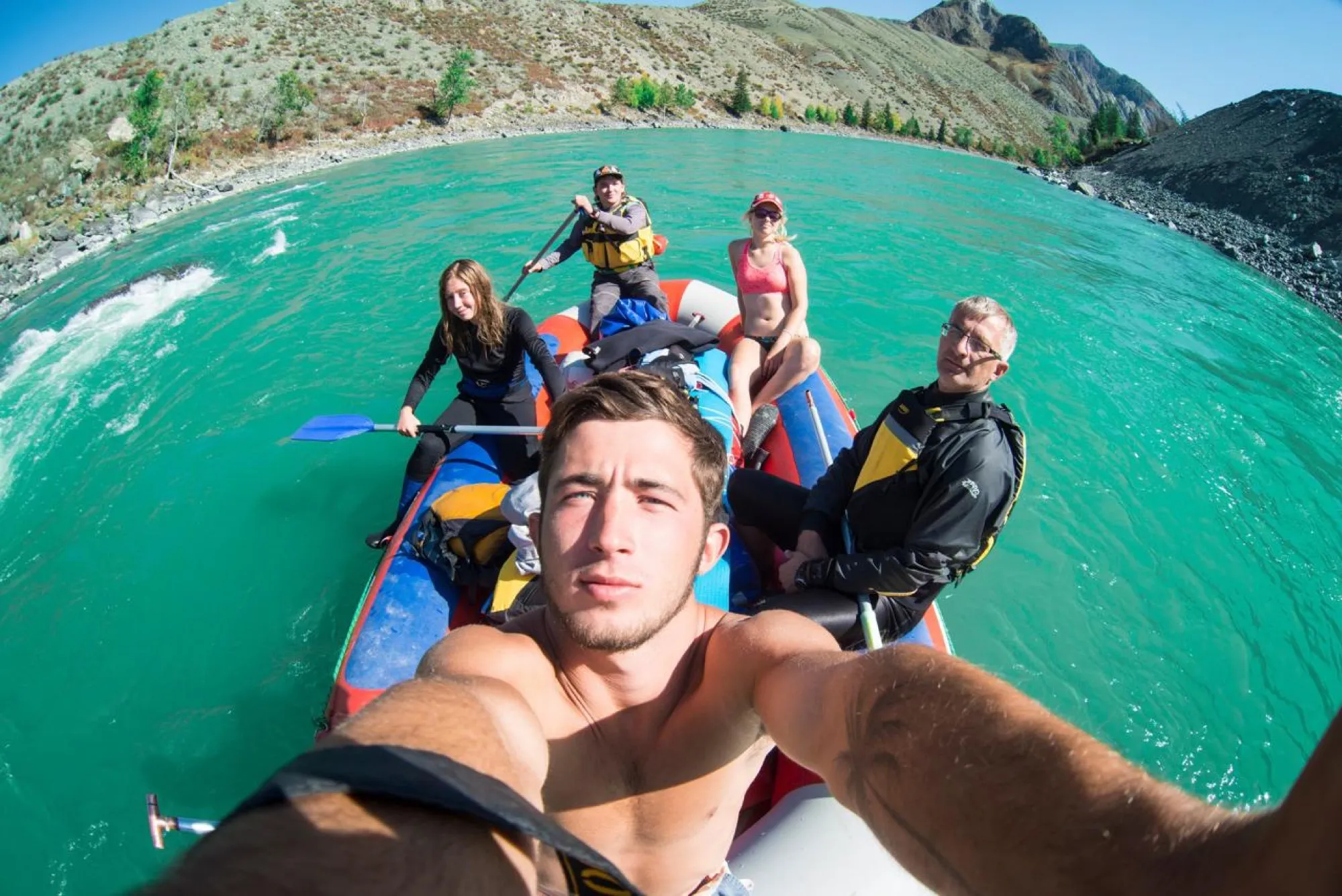 Сегодня переезжаем в Тюнгур на базу Высотник, обедаем и отправляемся в сплав по Катуни. Сегодня будем преодолевать серьезные пороги под названием "Аккемский прорыв". Ночуем у устья Аргута. Сплав: 30 км