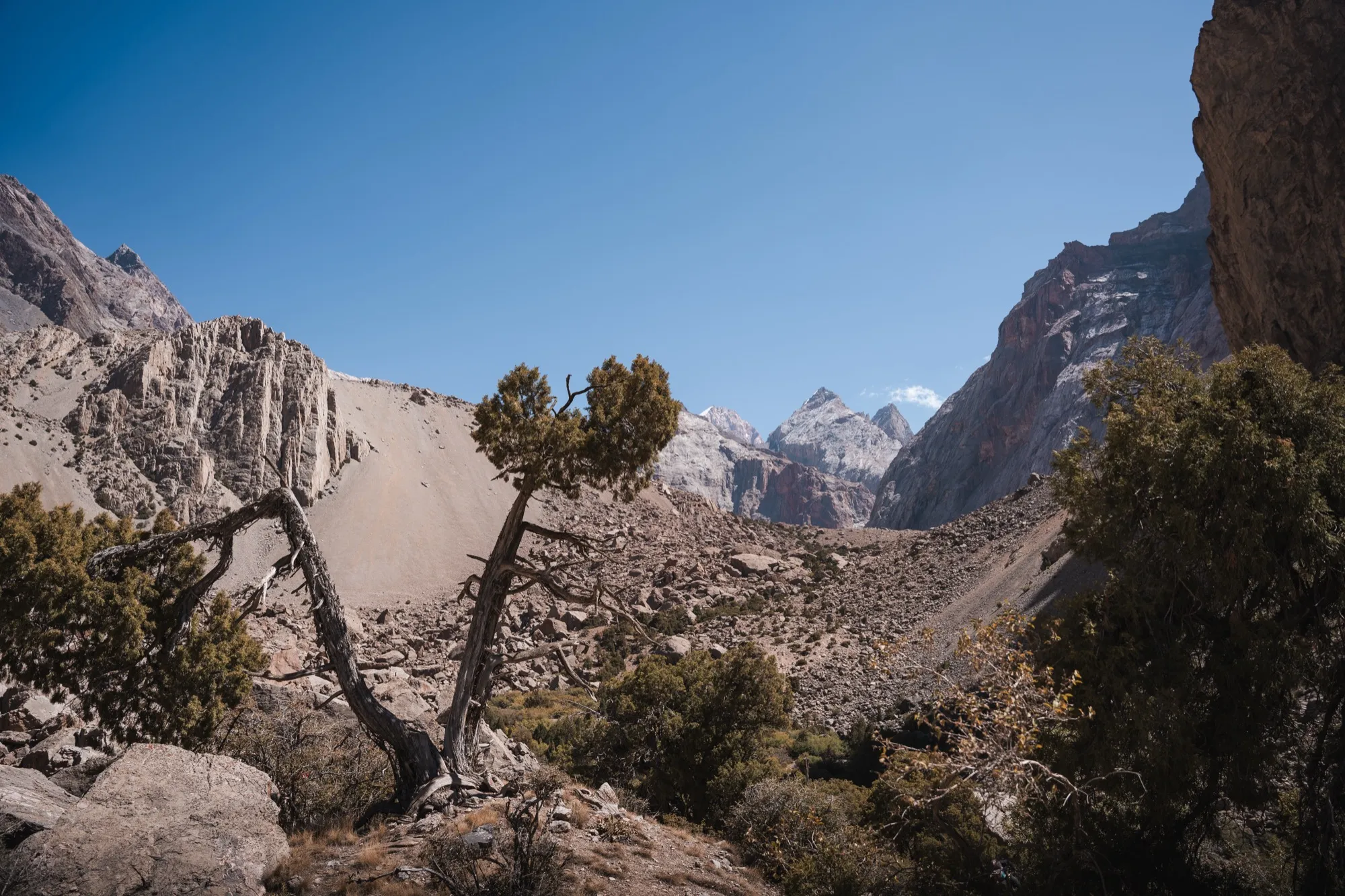 Прощаемся с озером Большое Алло и этим прекрасным местом. Впереди нас ждёт спуск по долине реки Зиндон. Недоходя до слияние рек Зиндон и Амшут ставим лагерь на высоте 2000 метров на озере Малое Алло, в котром можно искупаться. Это последнее озеро на нашем маршруте. Да и вечер с костром у нас заключительный в походе по Фанским горам. Да, ещё впереди переход и дорога до Самарканда, а там ещё один вечер. Но поход, увы, подходит к концу. Делимся впечатлениями, поём песни, играем, ложимся спать. Завтра последний ходовой день.