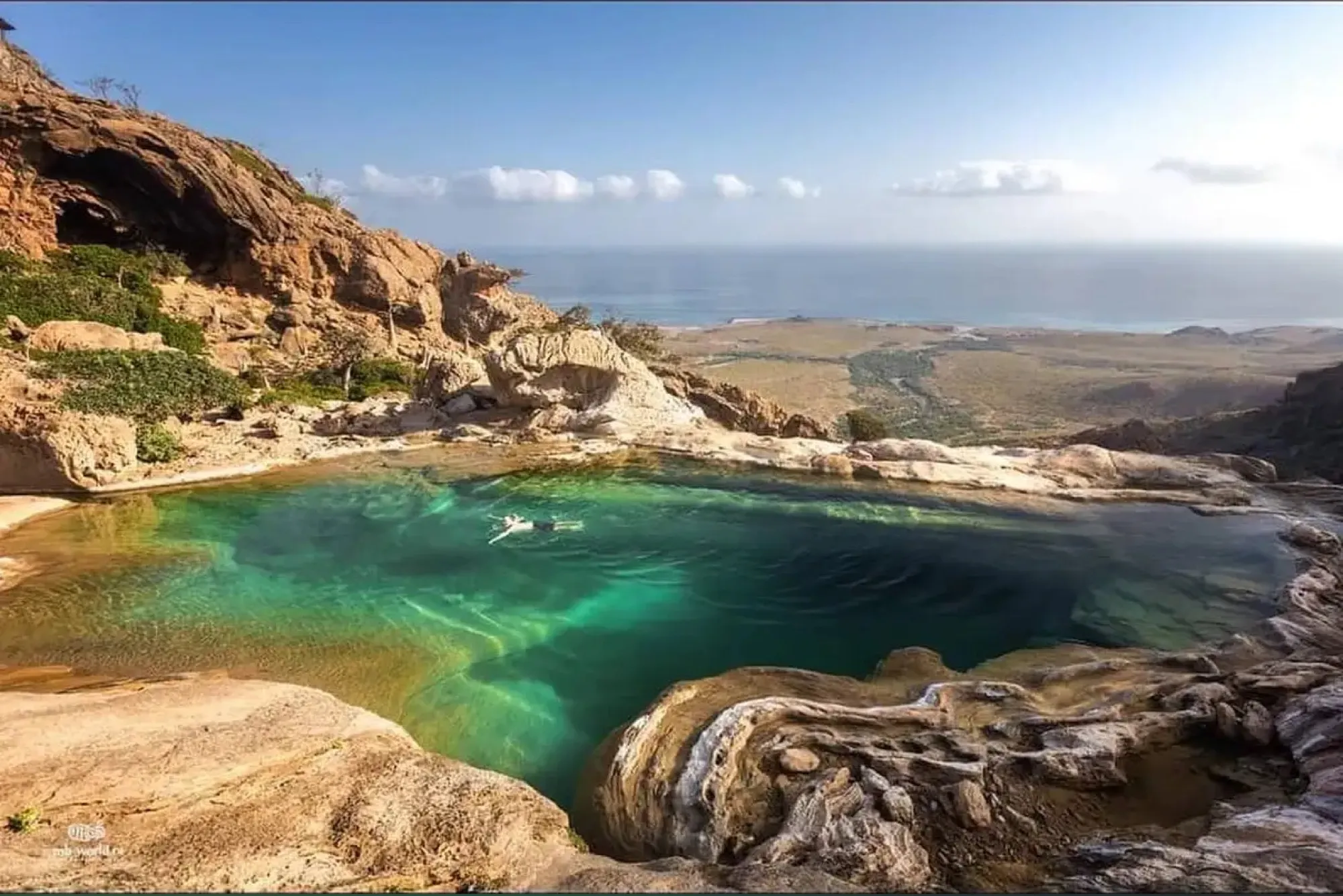 Встречаем рассвет на вершине 200-метровой дюны Архер — зрелище, ради которого точно стоит проснуться на заре! Затем нас ждёт головокружительный трек к бассейну Инфинити, парящему над бирюзовым морем, где мы прыгаем с 10 метров в прохладную воду — то, что нужно в жаркий день! Затем гуляем по заповеднику Хомхил среди драконовых деревьев и ладана. День, полный покоя, гармонии и безмятежности в сердце Сокотры.