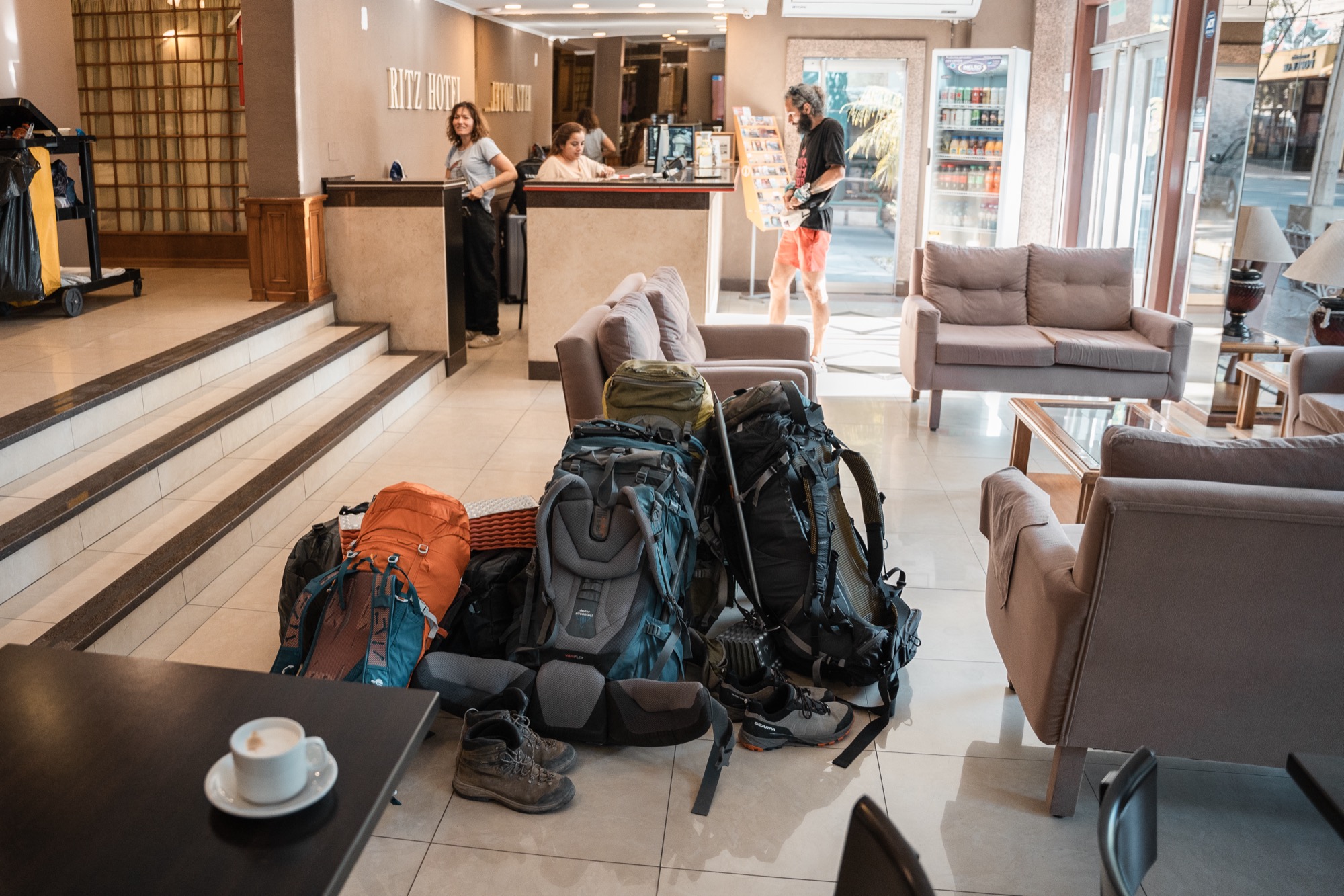 отдали баул и рюкзак для заброски мулами в Plaza del Mulas (4300м), а сами поехали на джипе ко входу в парк.