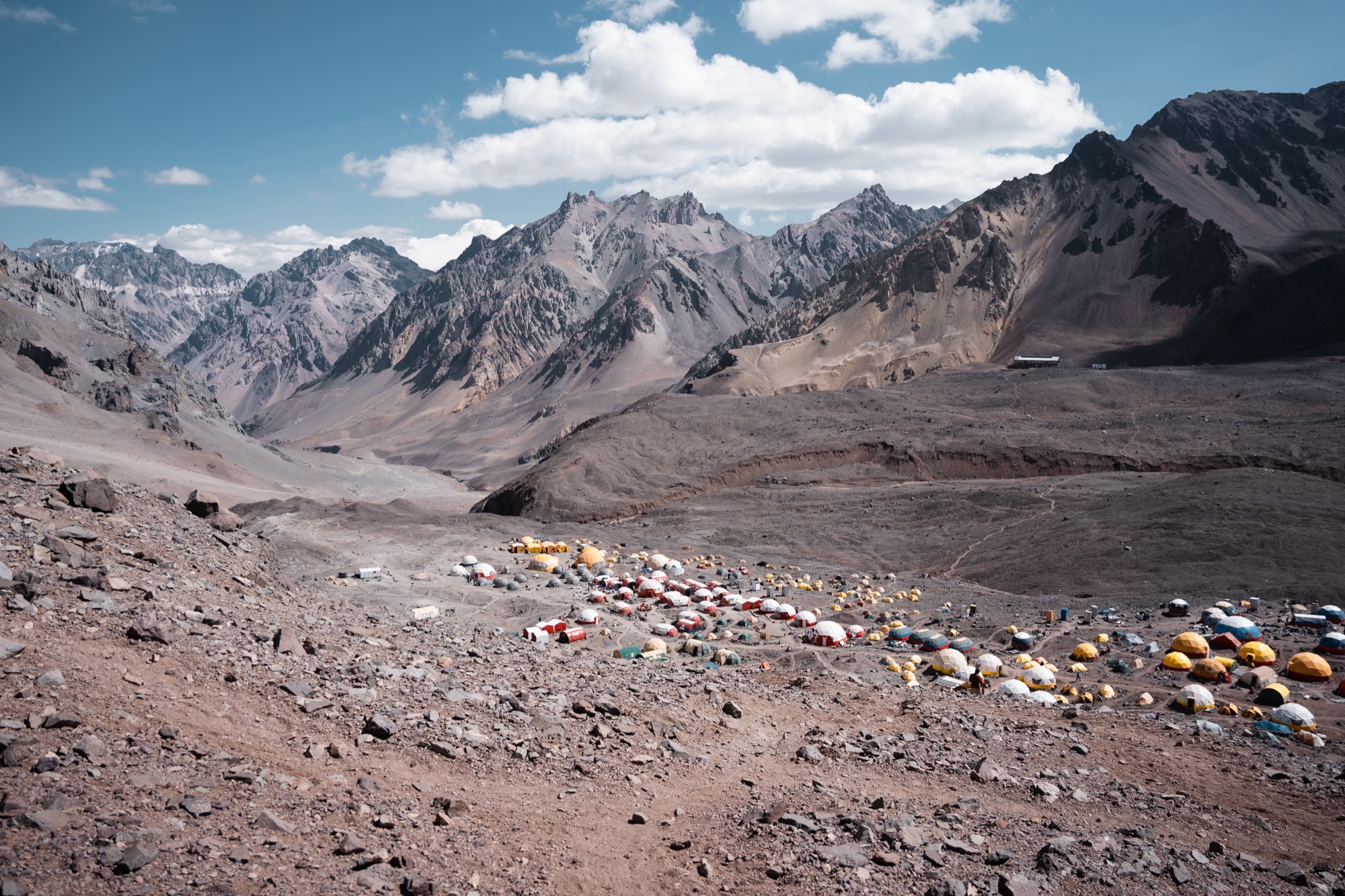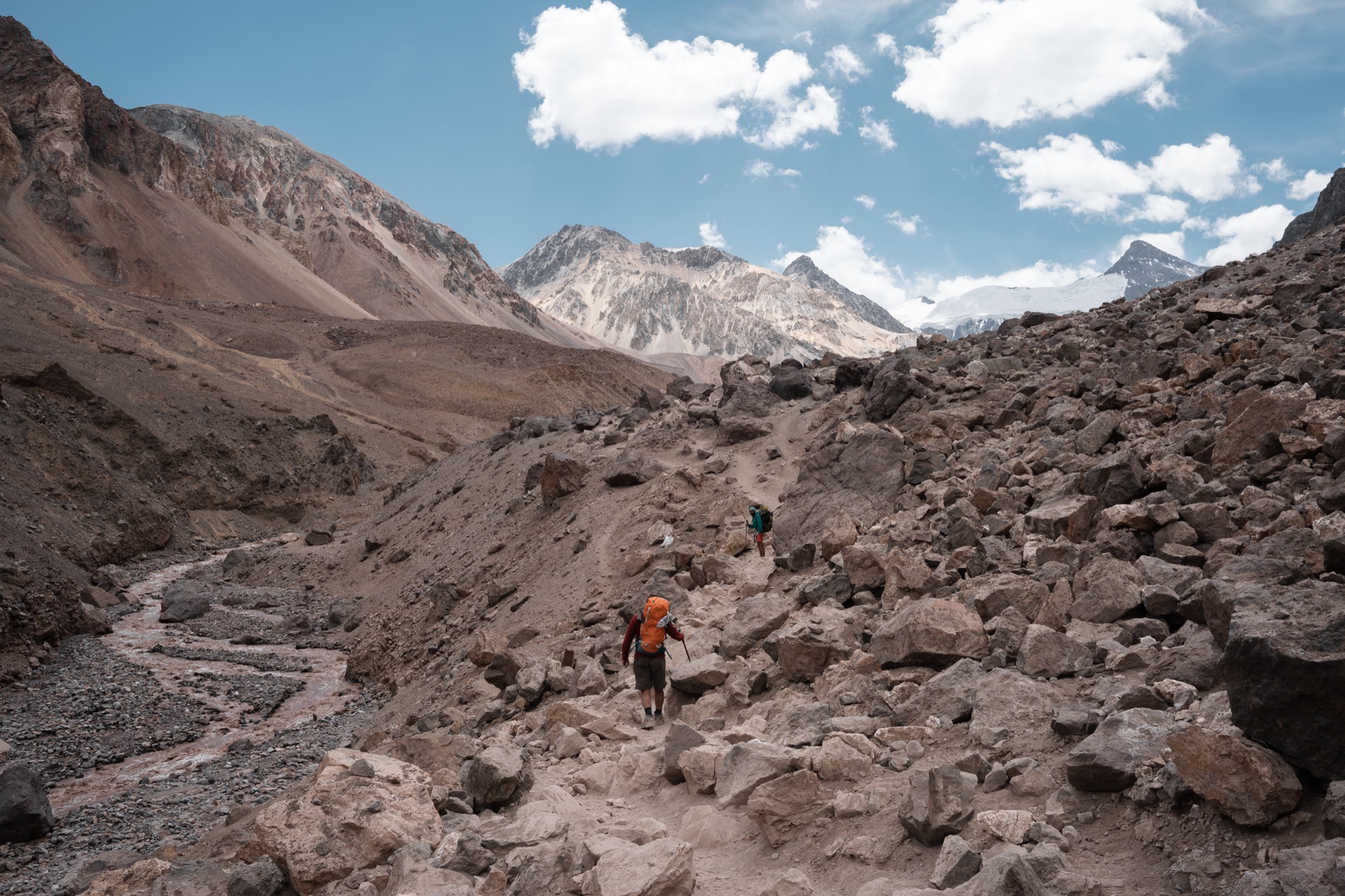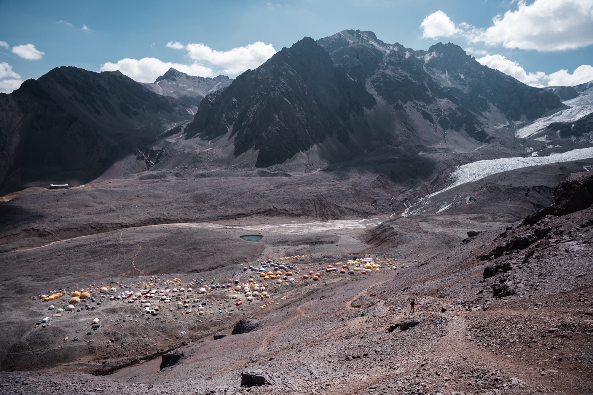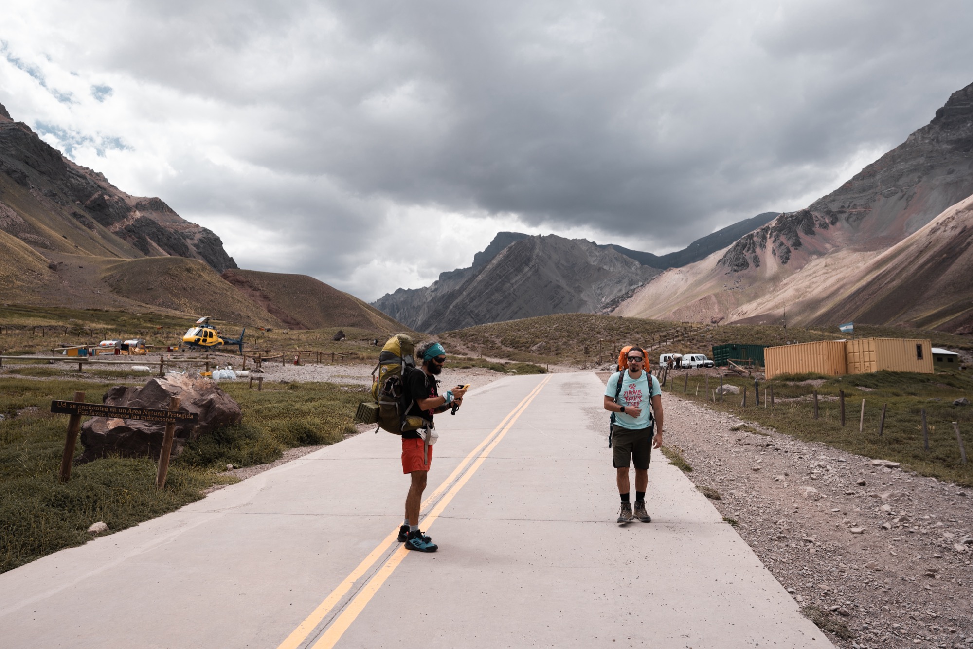 Он побежал его искать и нашёл, но дрон был в плачевном состоянии и уже не запускался. А мы так хотели сделать классные кадры с дрона. Ну что ж, придя в себя от потери мы позавтракали и выдвинулись в главный базовый лагерь Plaza del Mulas на высоту 4300м.