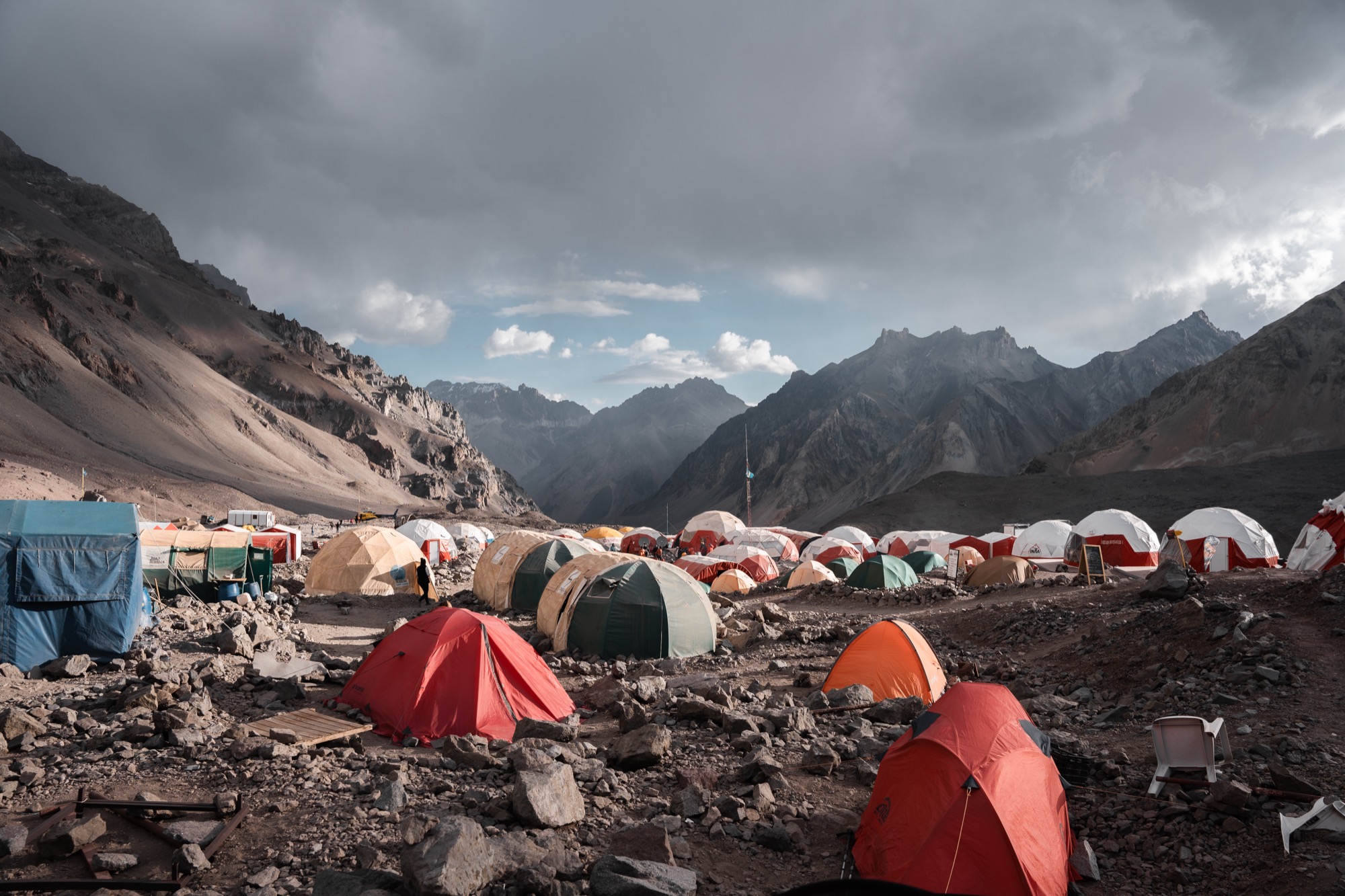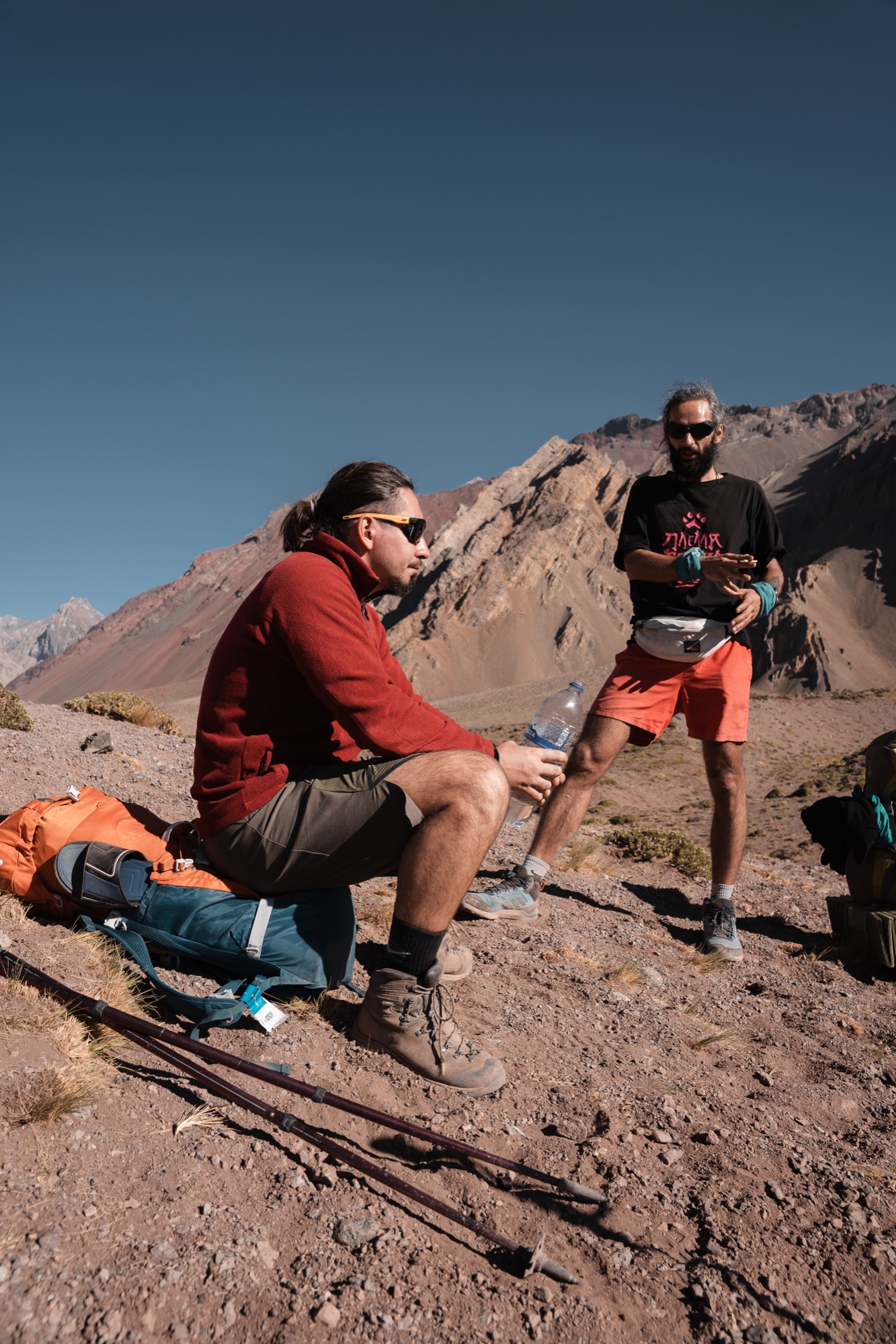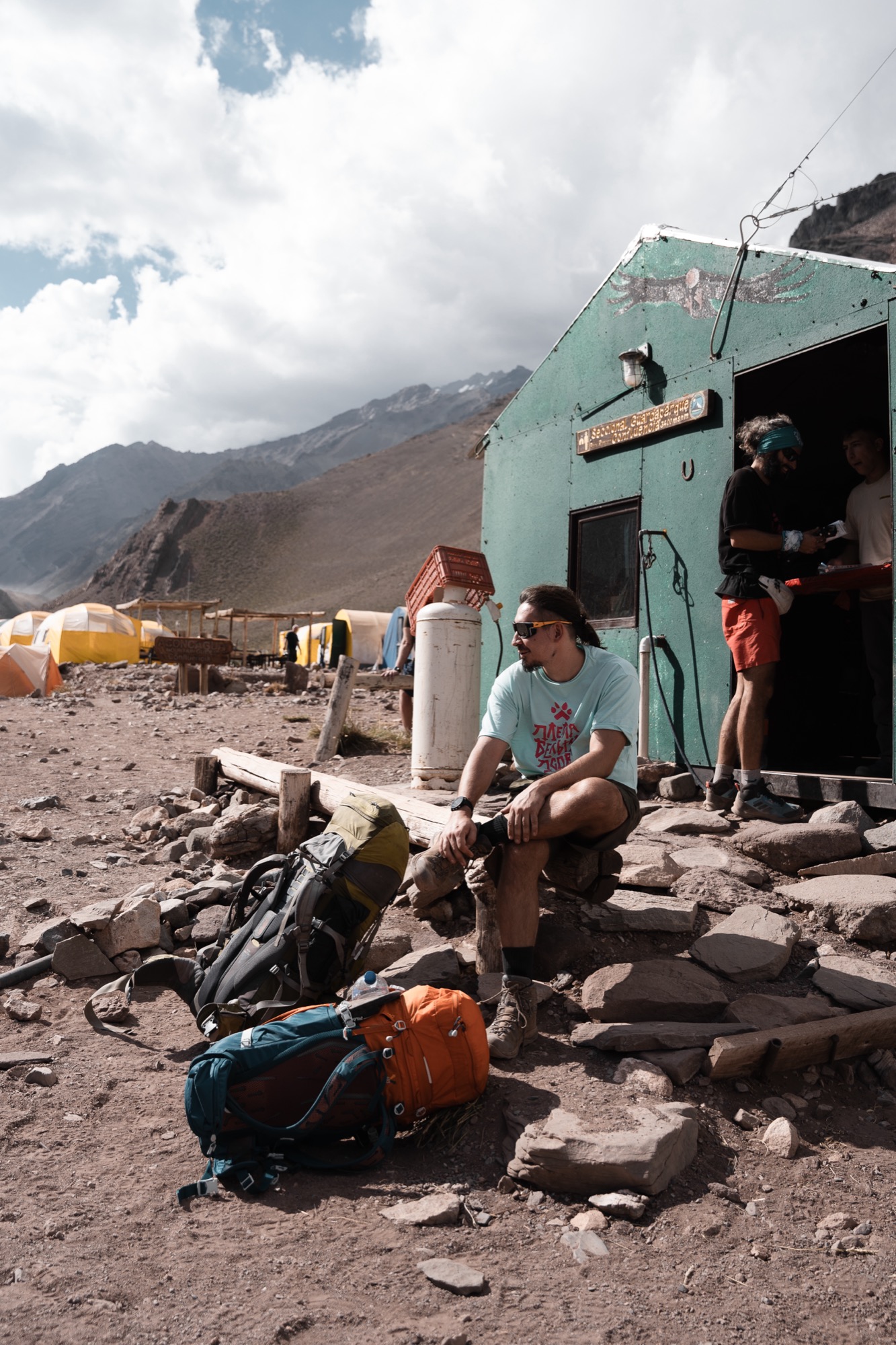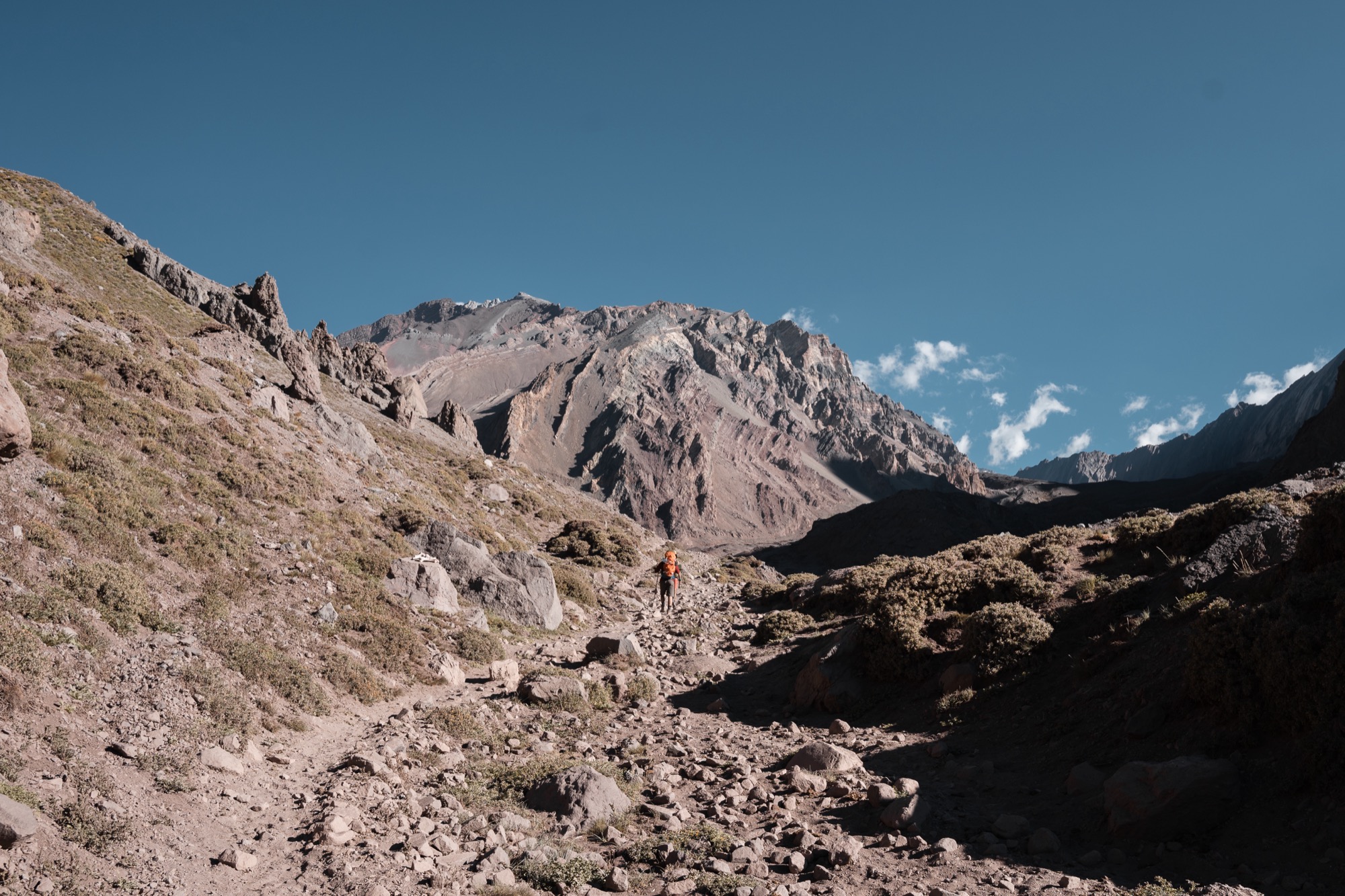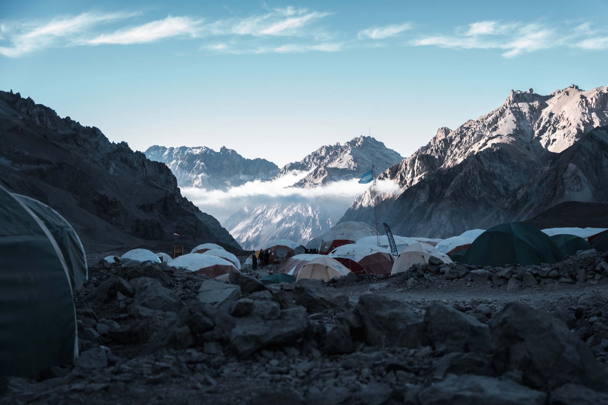 Он побежал его искать и нашёл, но дрон был в плачевном состоянии и уже не запускался. А мы так хотели сделать классные кадры с дрона. Ну что ж, придя в себя от потери мы позавтракали и выдвинулись в главный базовый лагерь Plaza del Mulas на высоту 4300м.