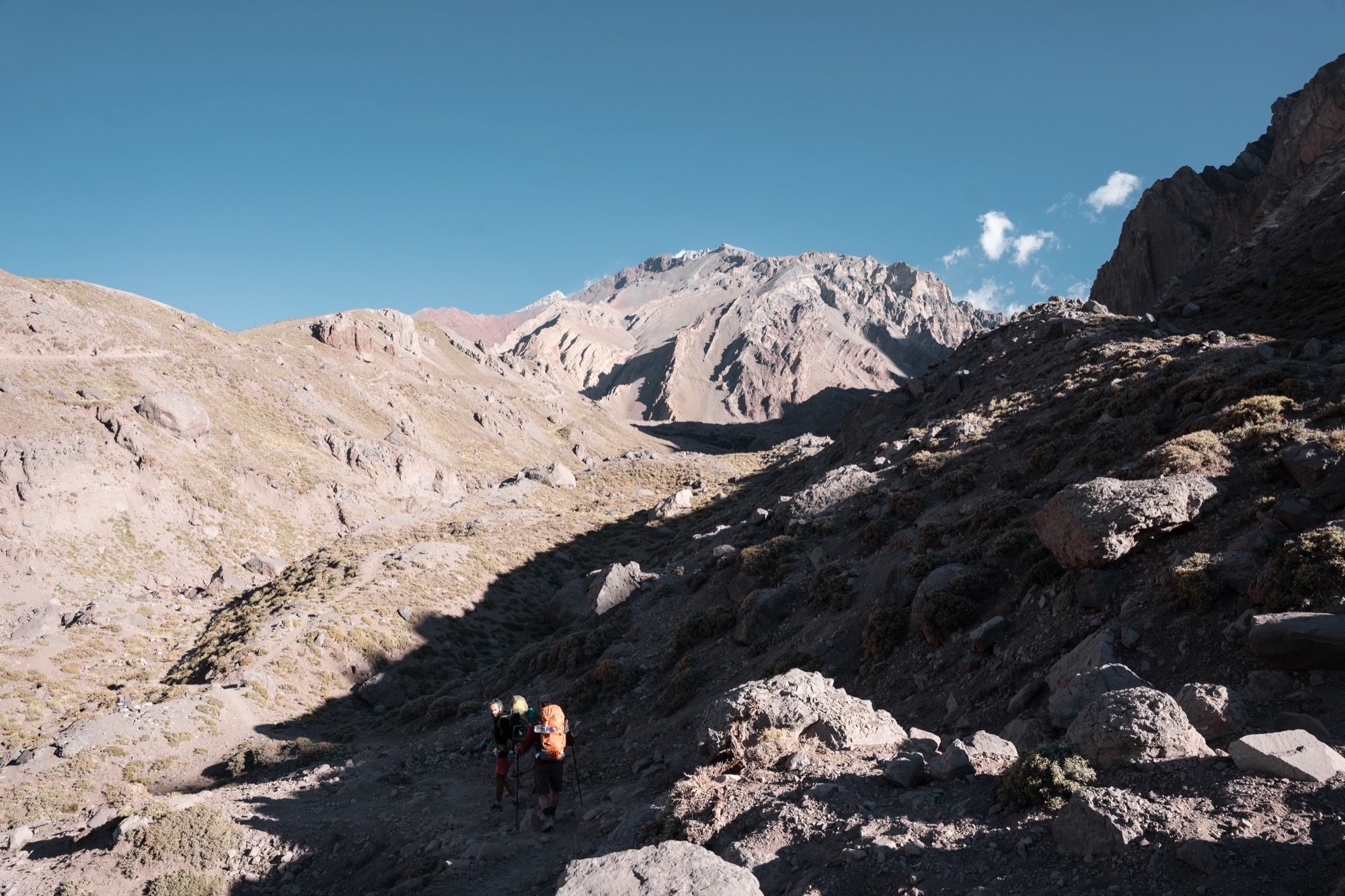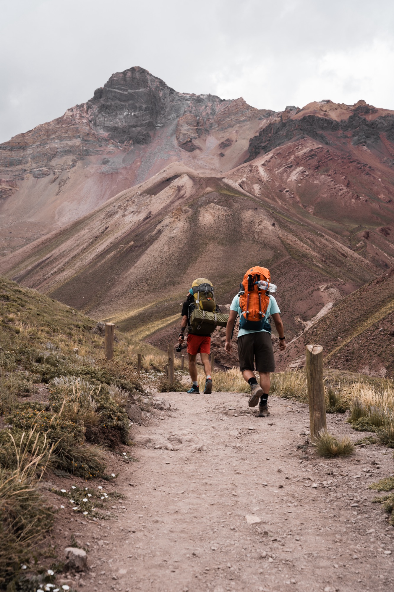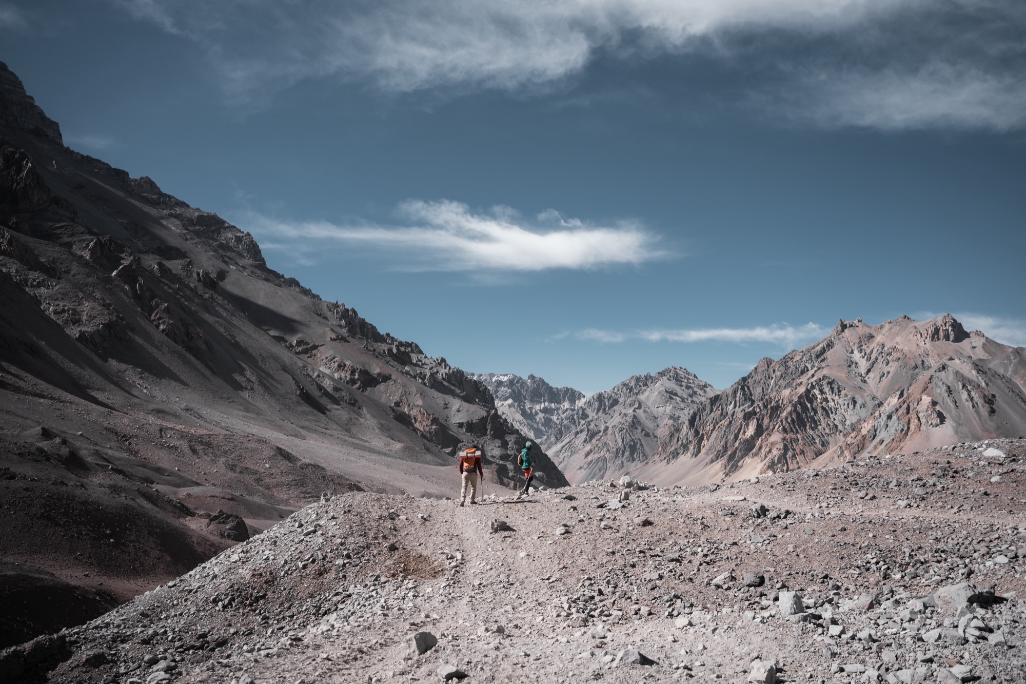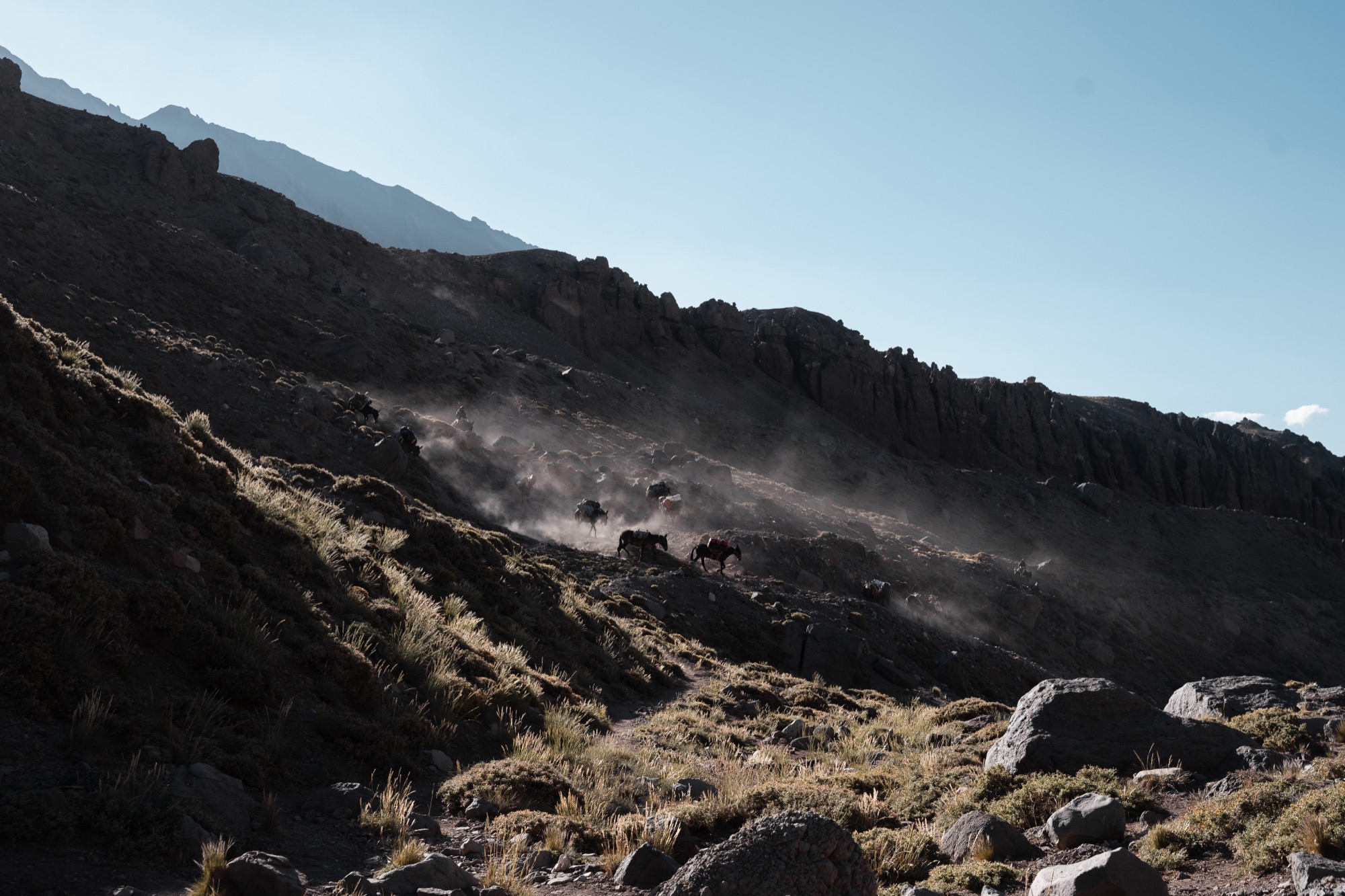 Он побежал его искать и нашёл, но дрон был в плачевном состоянии и уже не запускался. А мы так хотели сделать классные кадры с дрона. Ну что ж, придя в себя от потери мы позавтракали и выдвинулись в главный базовый лагерь Plaza del Mulas на высоту 4300м.